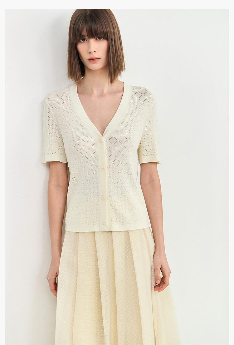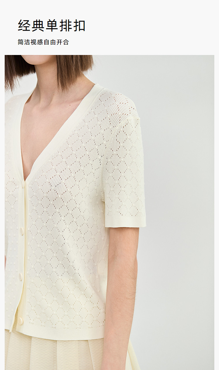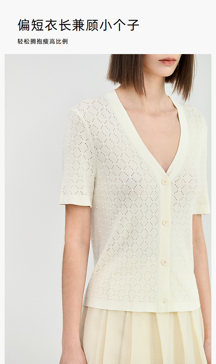 【春季】气质纯色通勤款设计感镂空时尚修身款针织开衫 179675