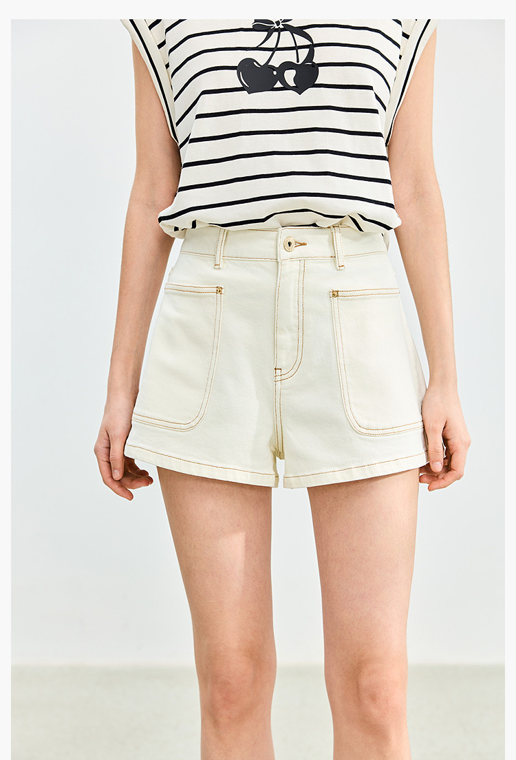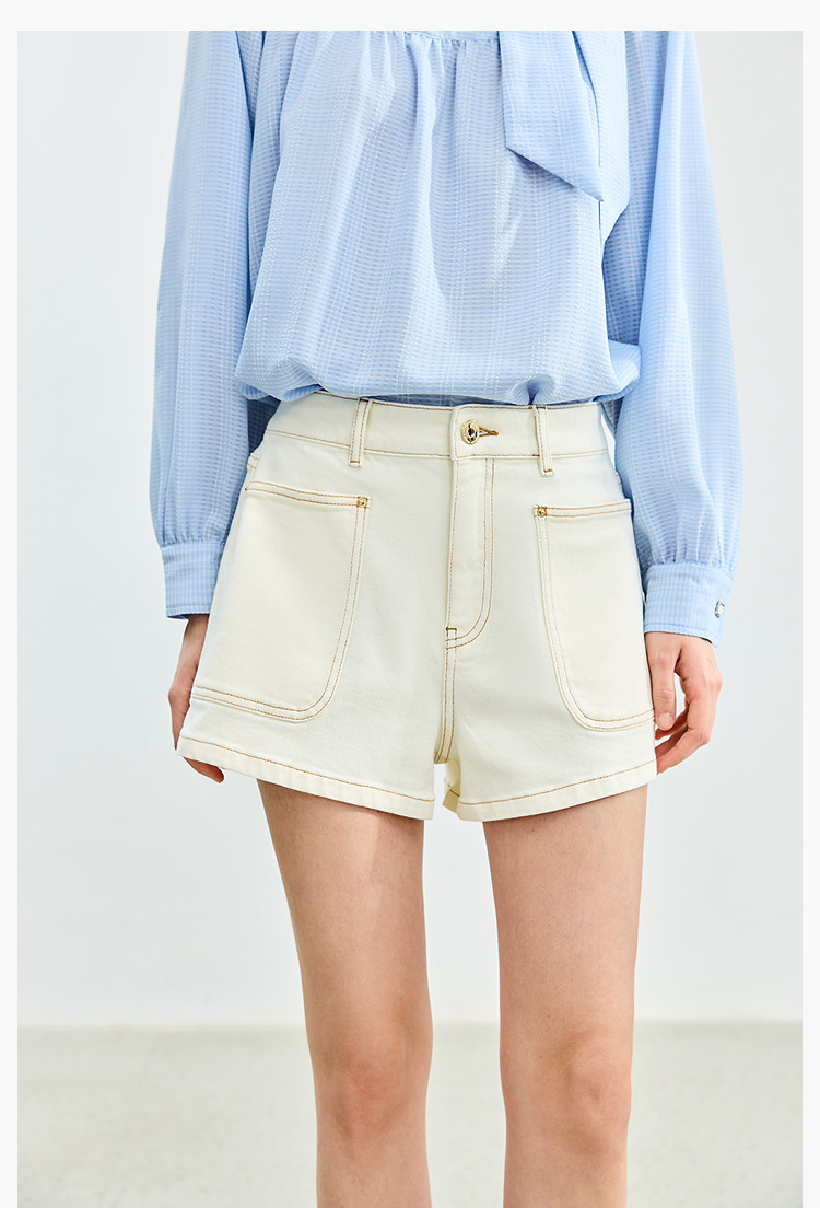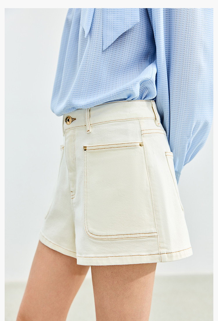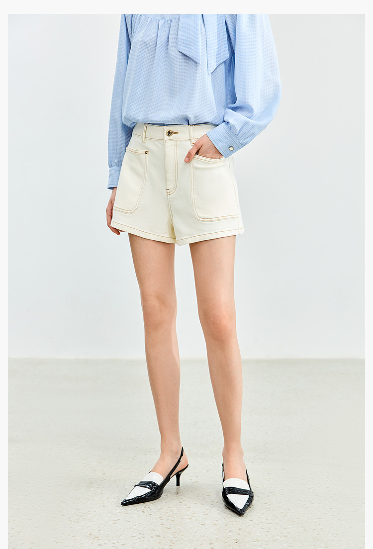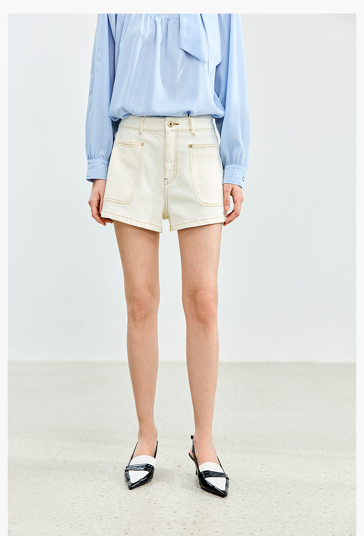 商品名称:【春季】牛仔裤女日常高腰A型简约撞色压线设计牛仔短裤 935131