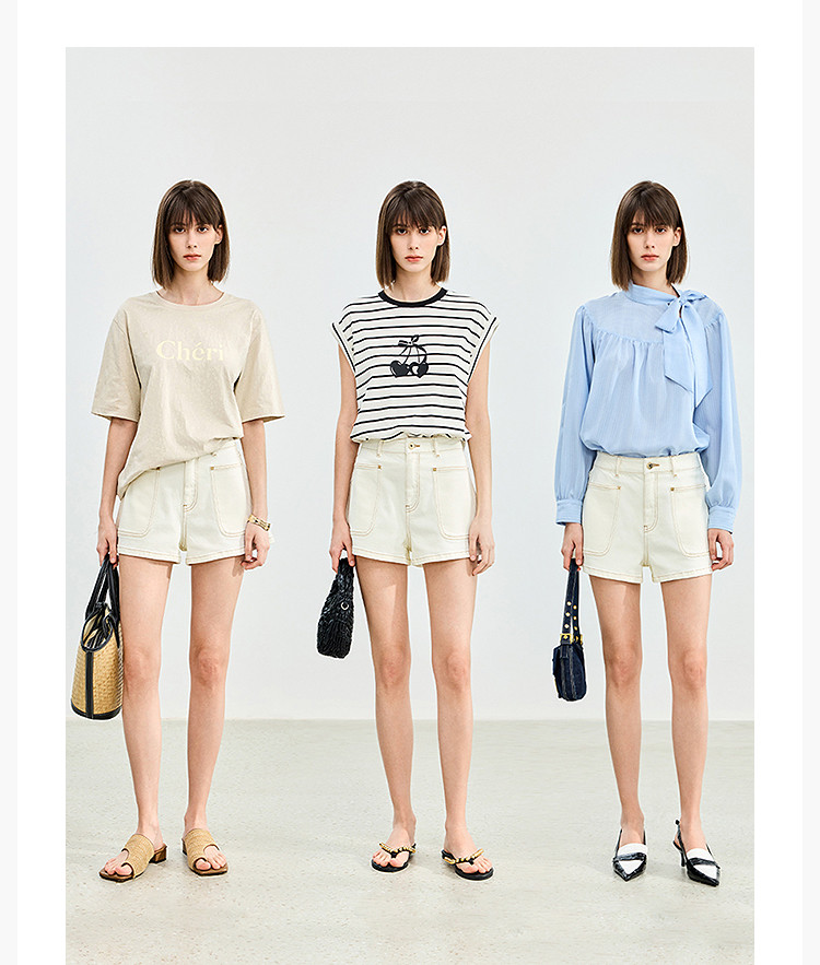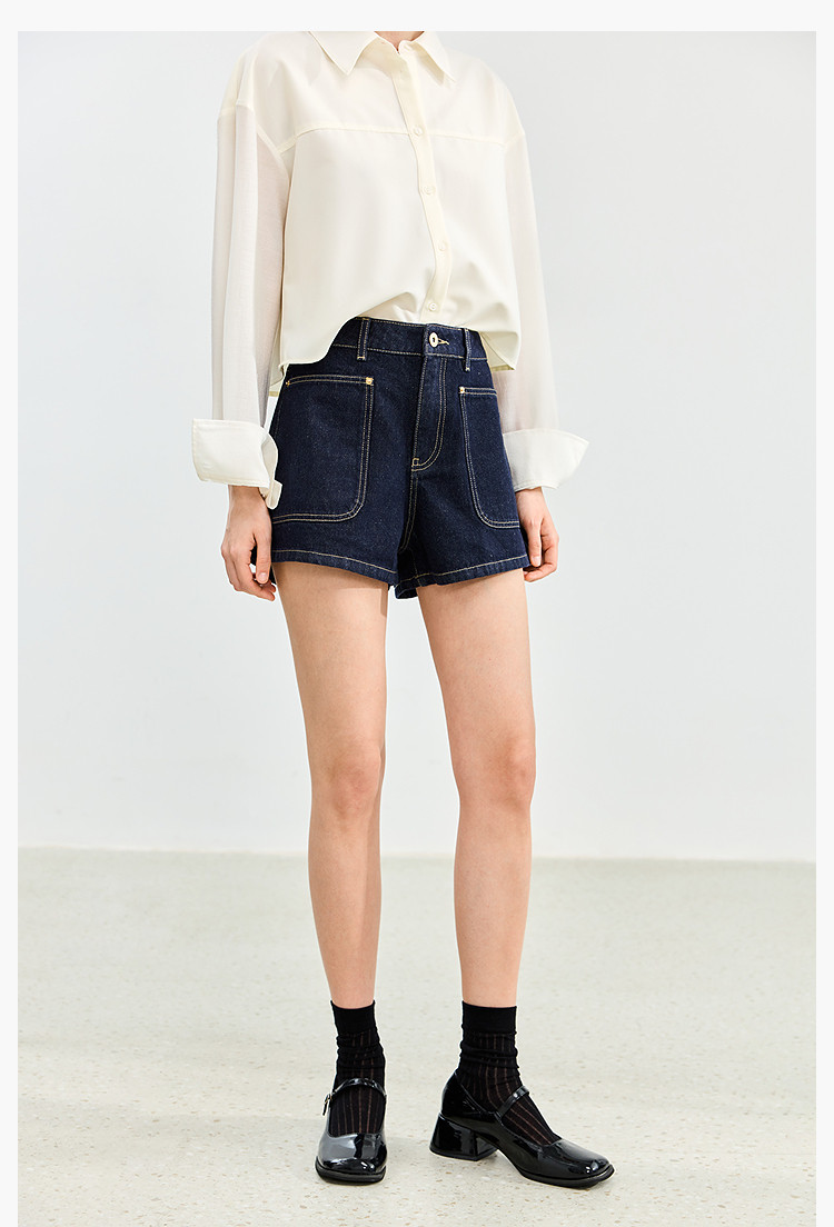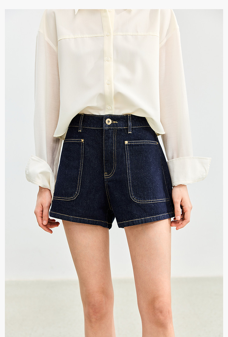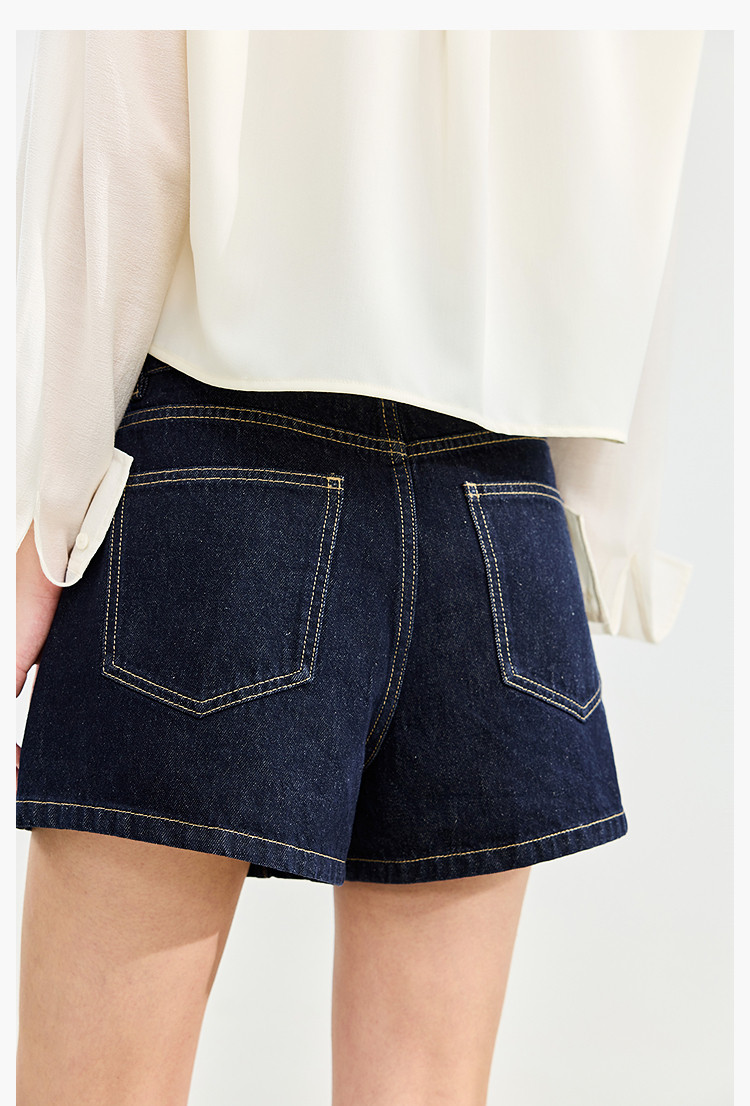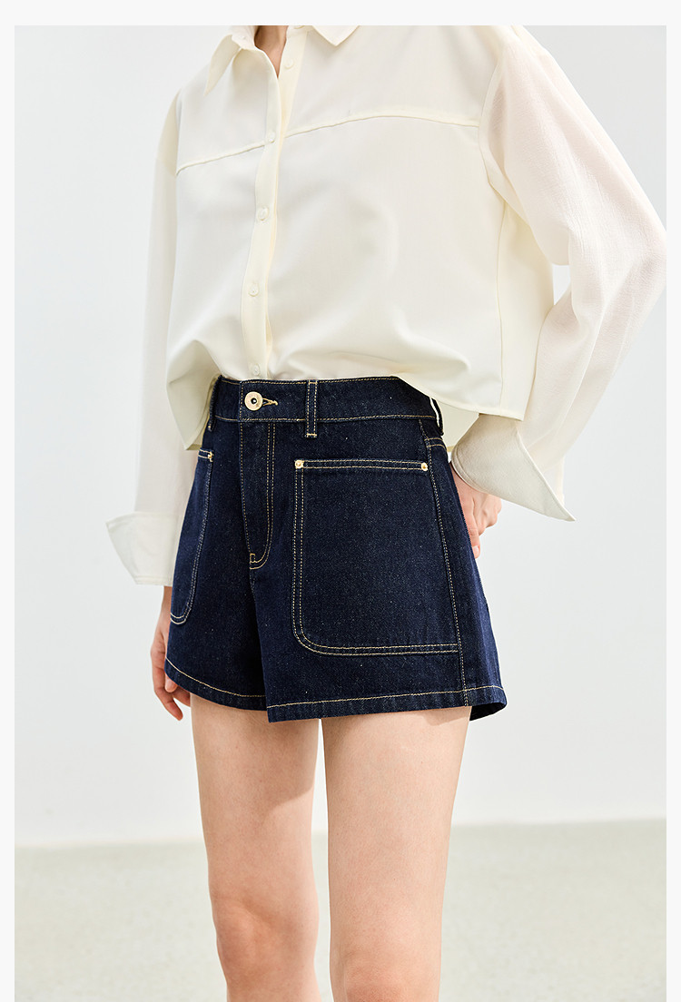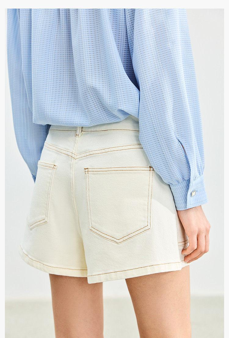 商品名称:【春季】牛仔裤女日常高腰A型简约撞色压线设计牛仔短裤 935131