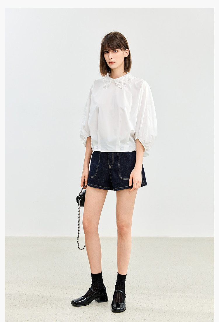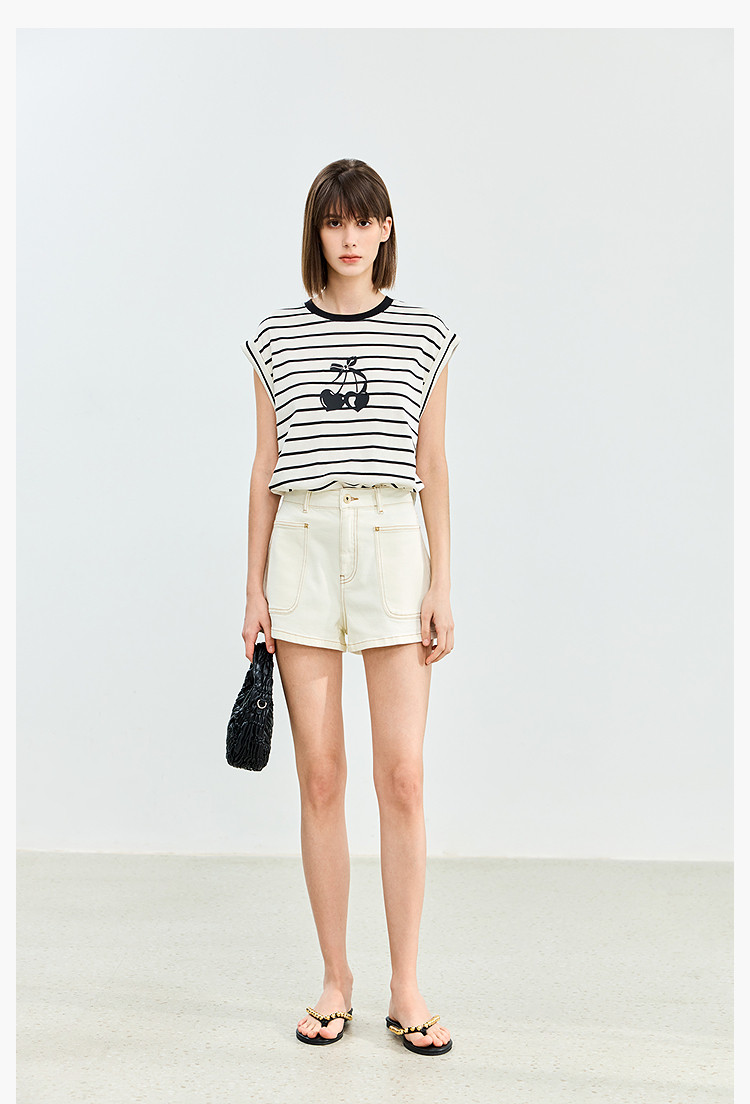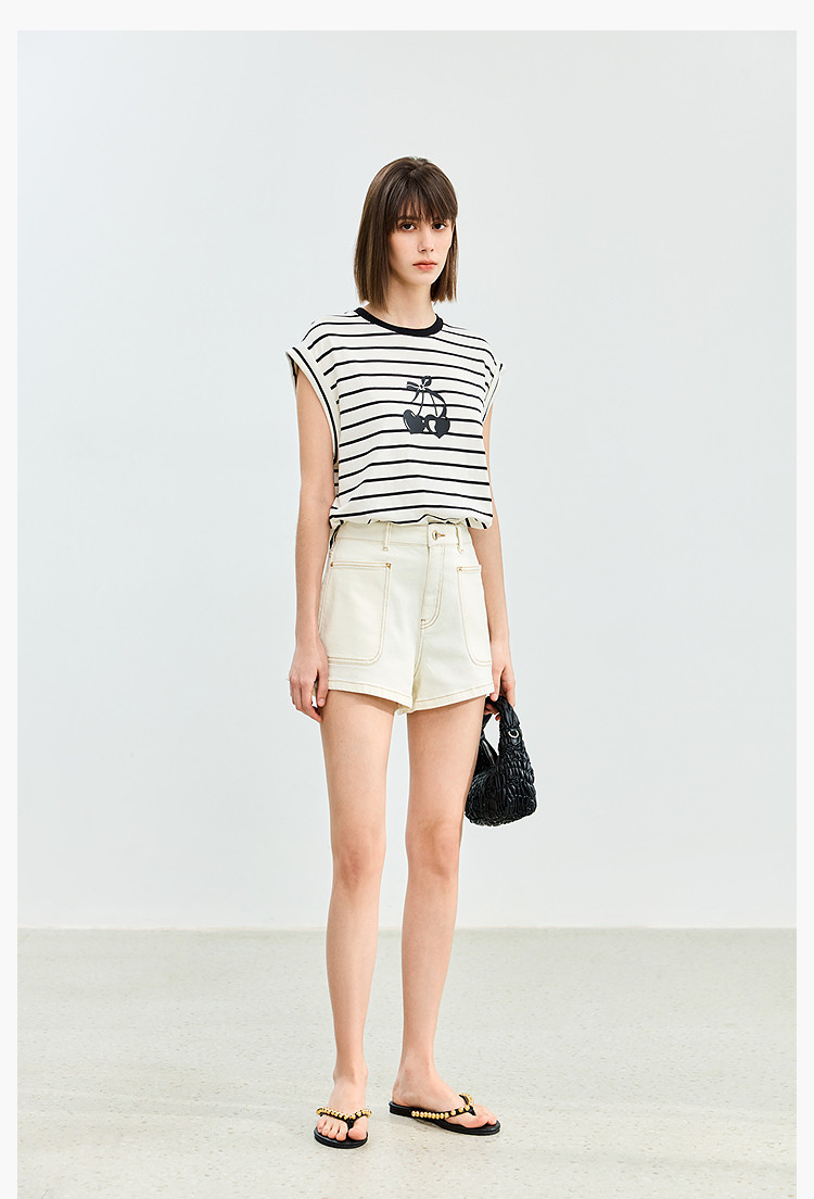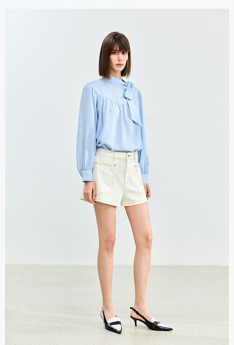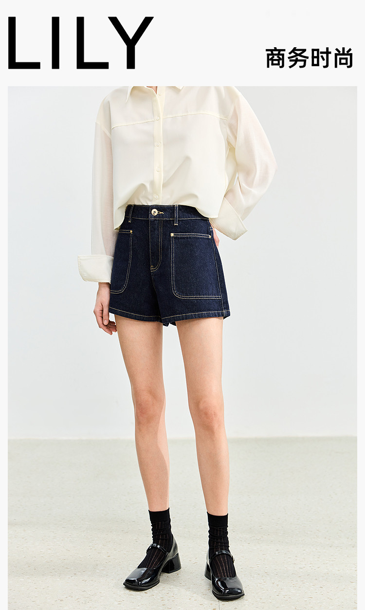 商品名称:【春季】牛仔裤女日常高腰A型简约撞色压线设计牛仔短裤 935131
