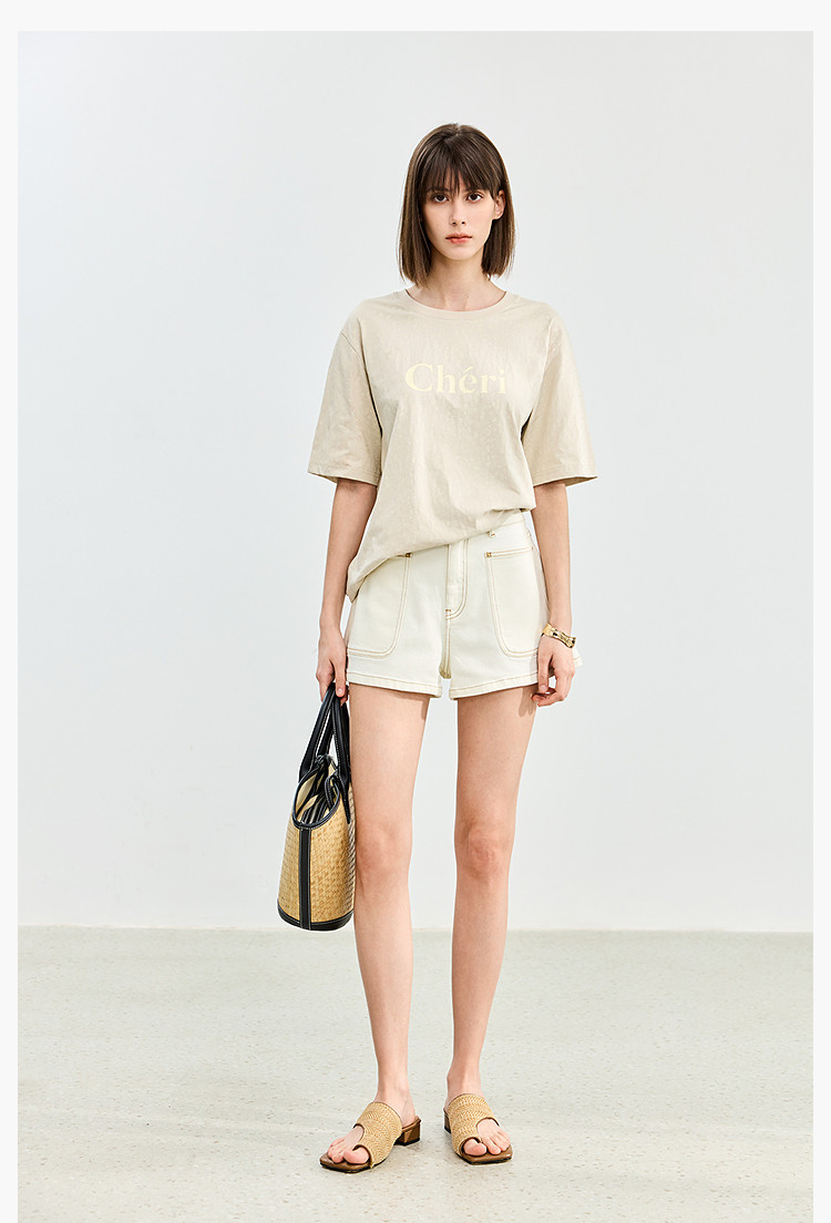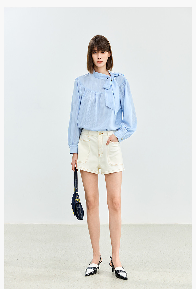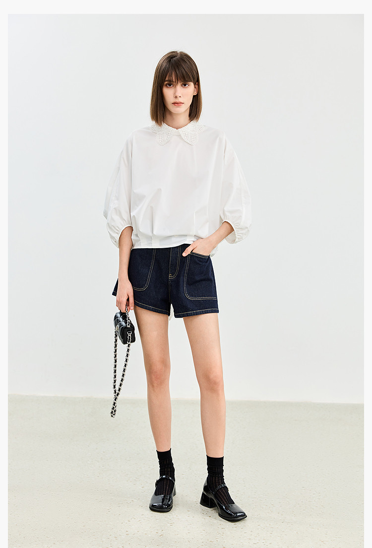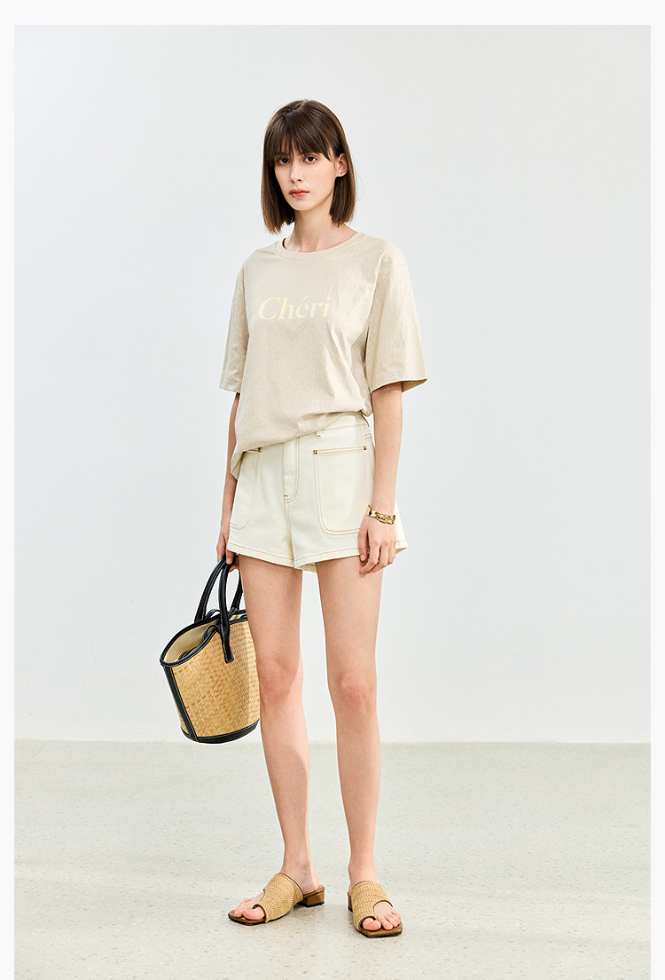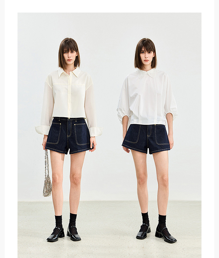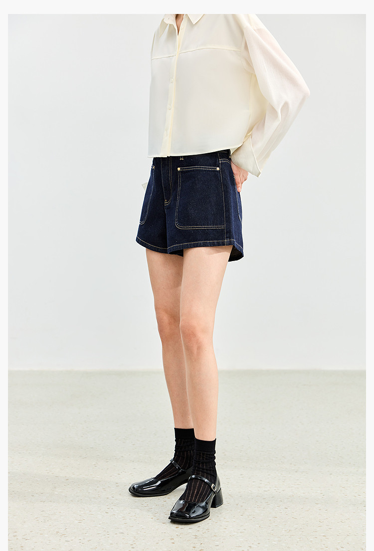 【春季】牛仔裤女日常高腰A型简约撞色压线设计牛仔短裤 935131