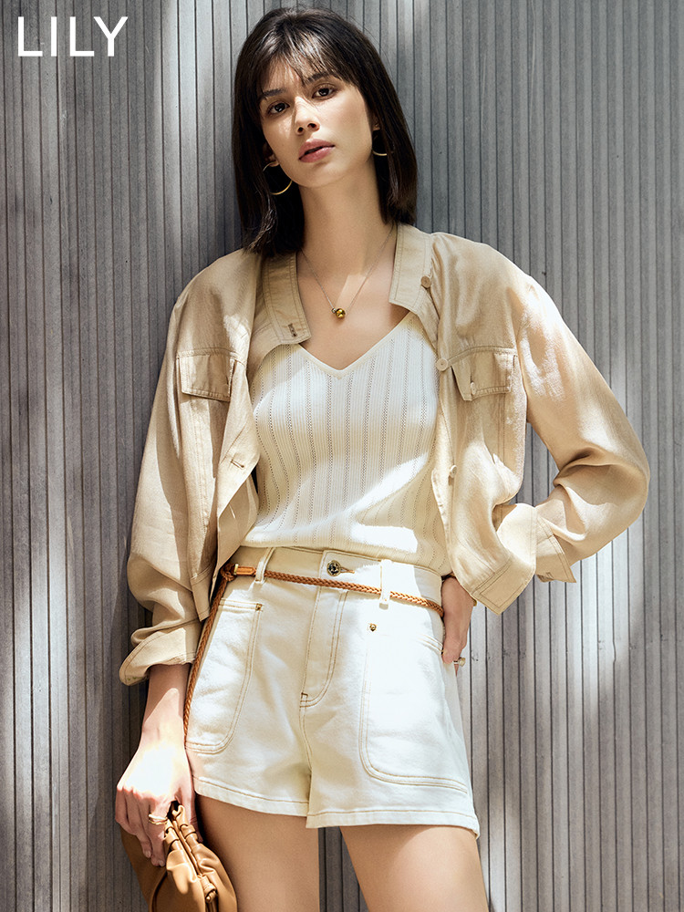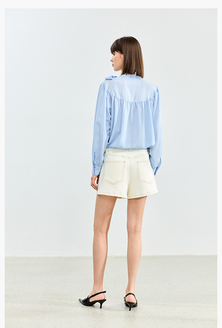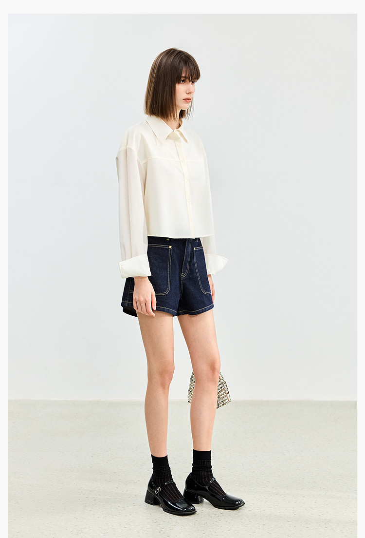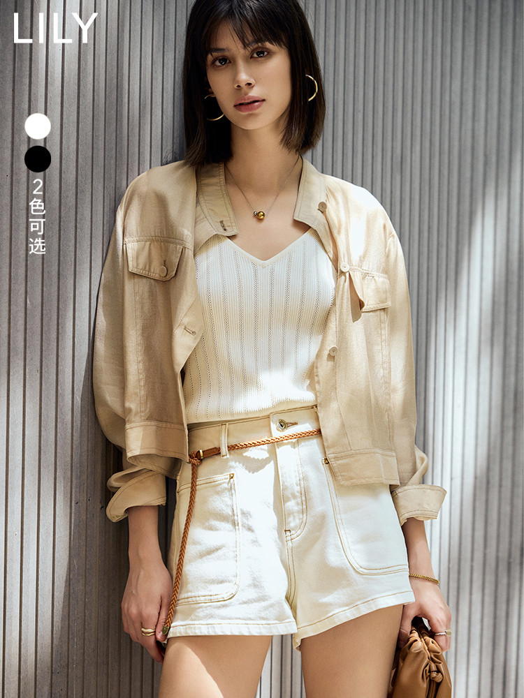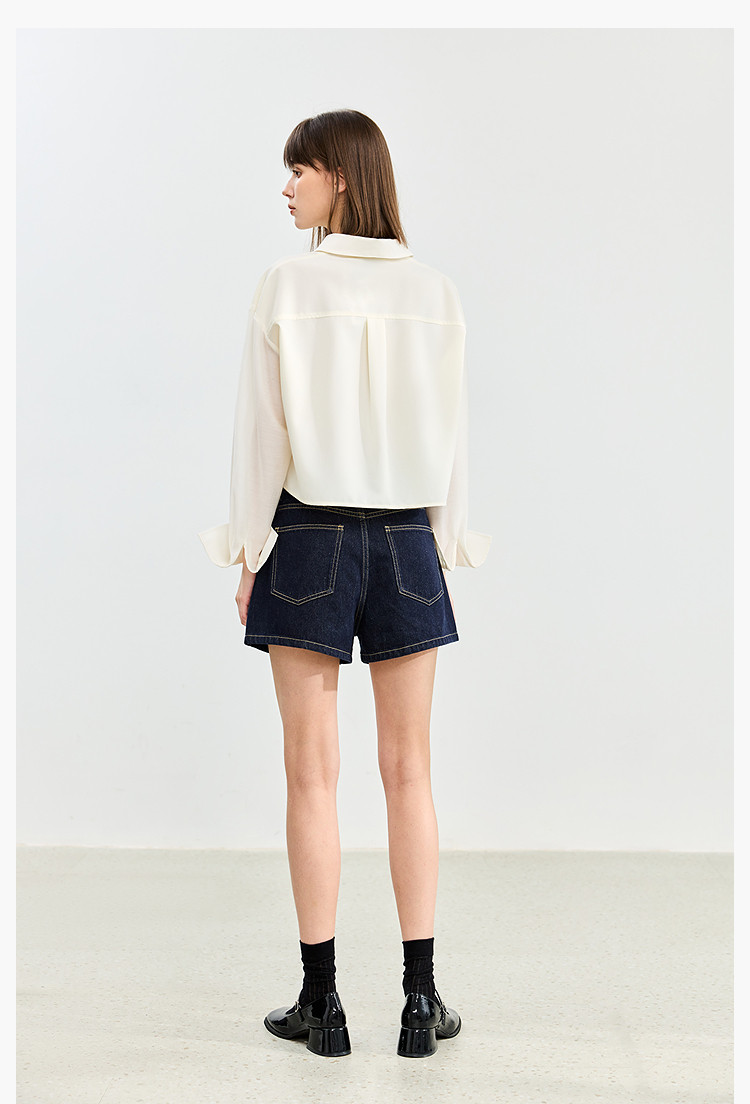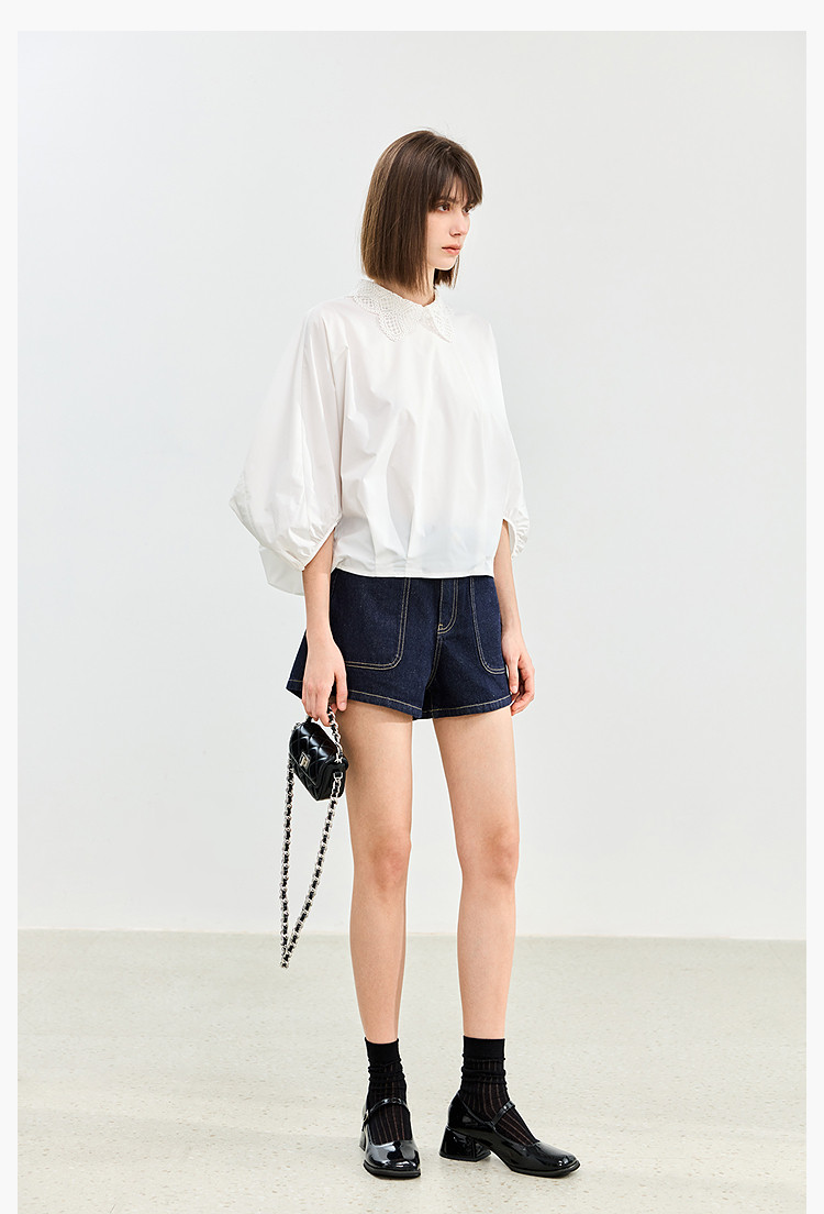 【春季】牛仔裤女日常高腰A型简约撞色压线设计牛仔短裤 935131