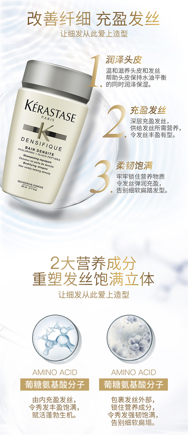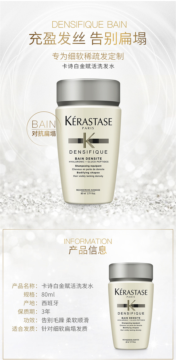 商品名称:Kerastase/卡诗 白金赋活洗发水 80ml 改善细软稀疏发质