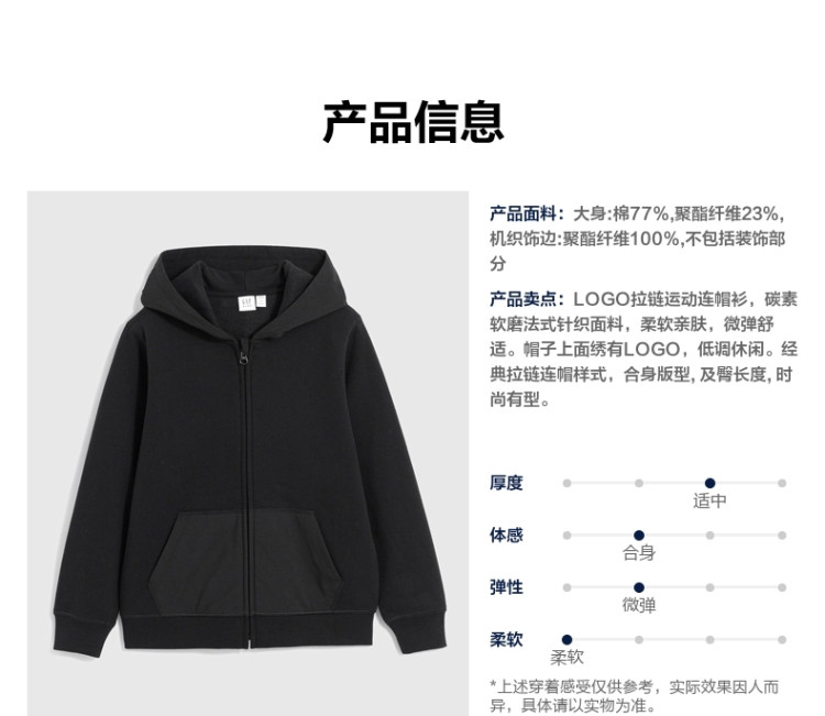 商品名称:Gap男童春秋LOGO碳素软磨抓绒保暖卫衣儿童装运动连帽衫836735 094682