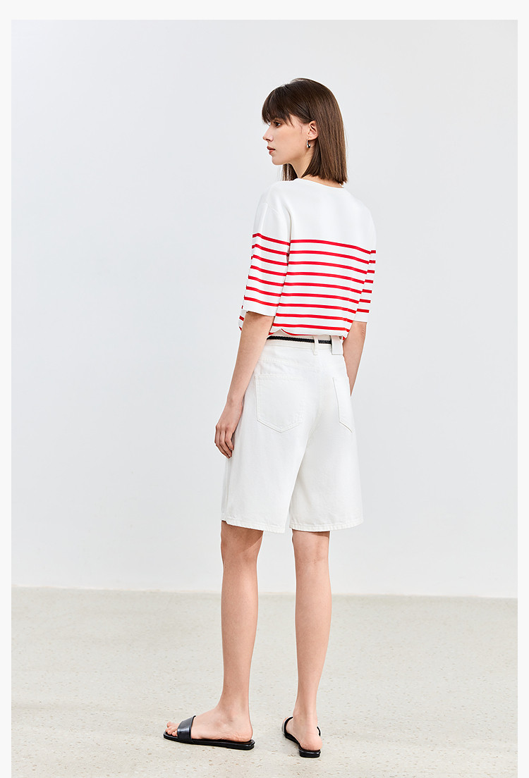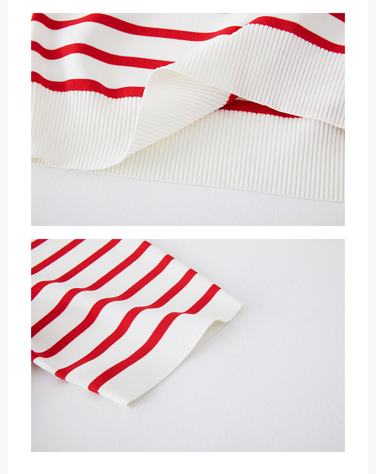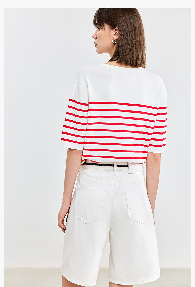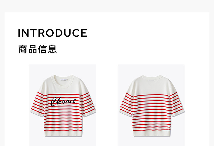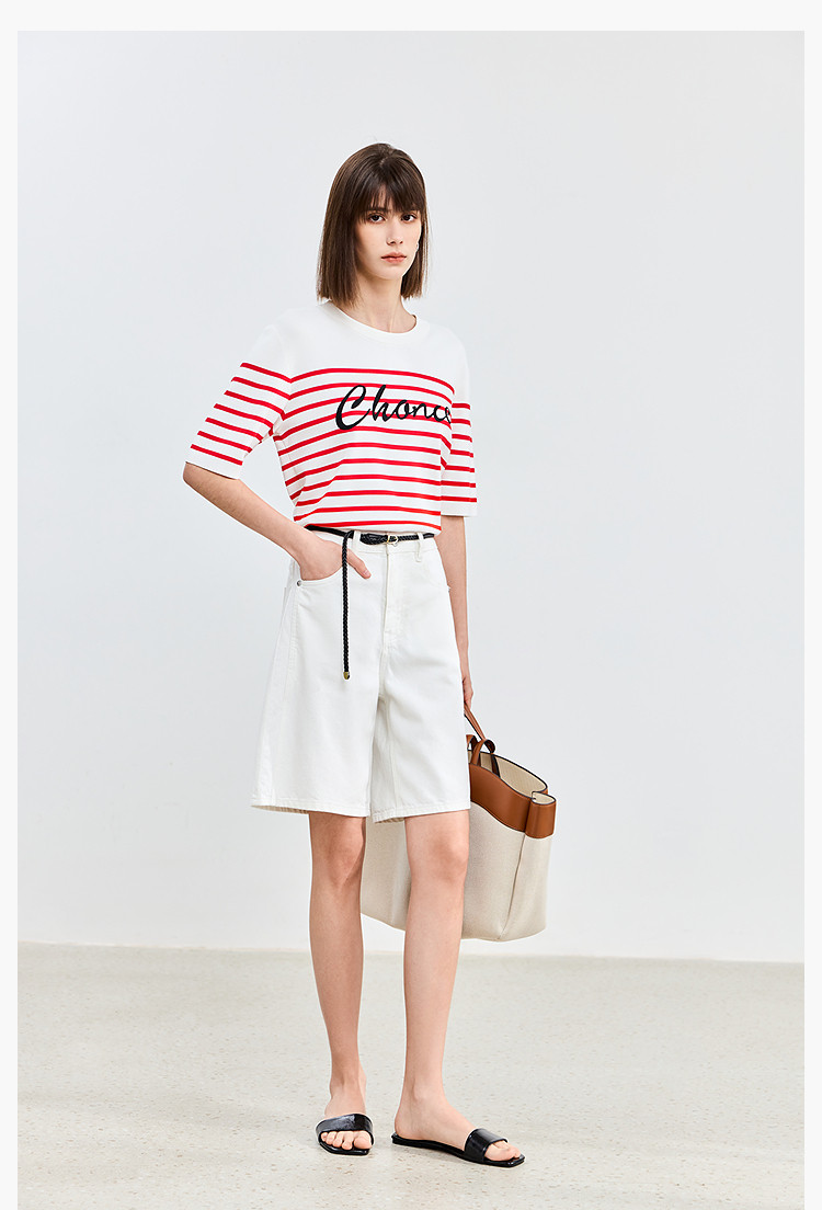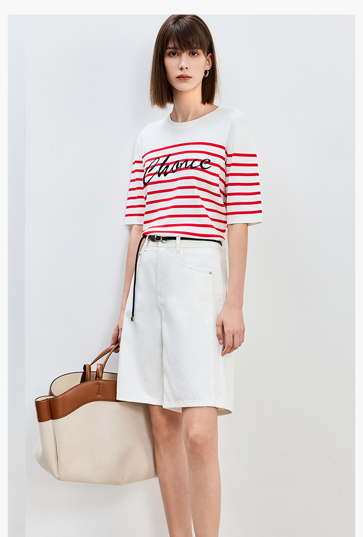 商品名称:【春季】时尚条纹前片艺术花卉字体绣花短袖针织衫 723675