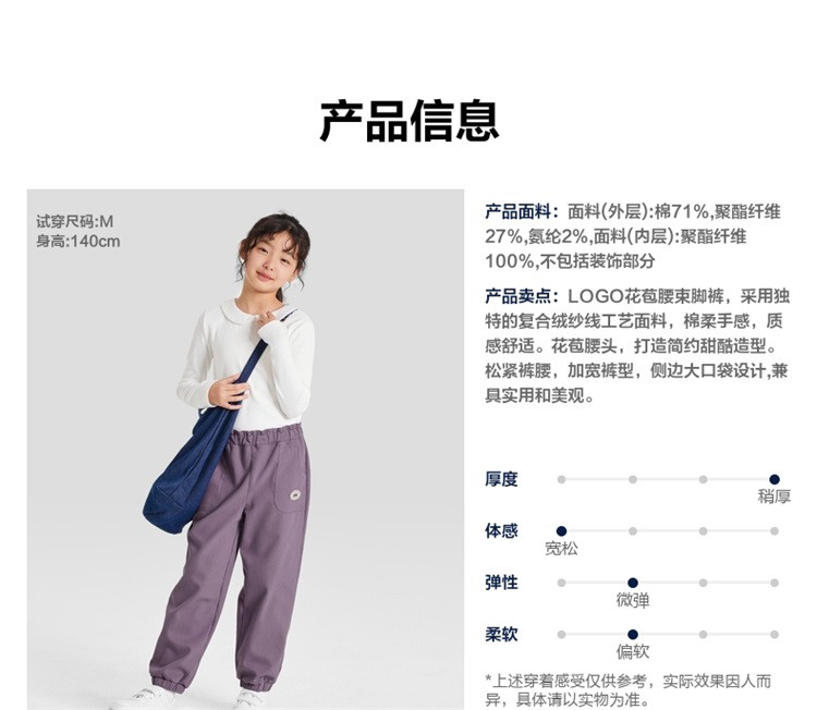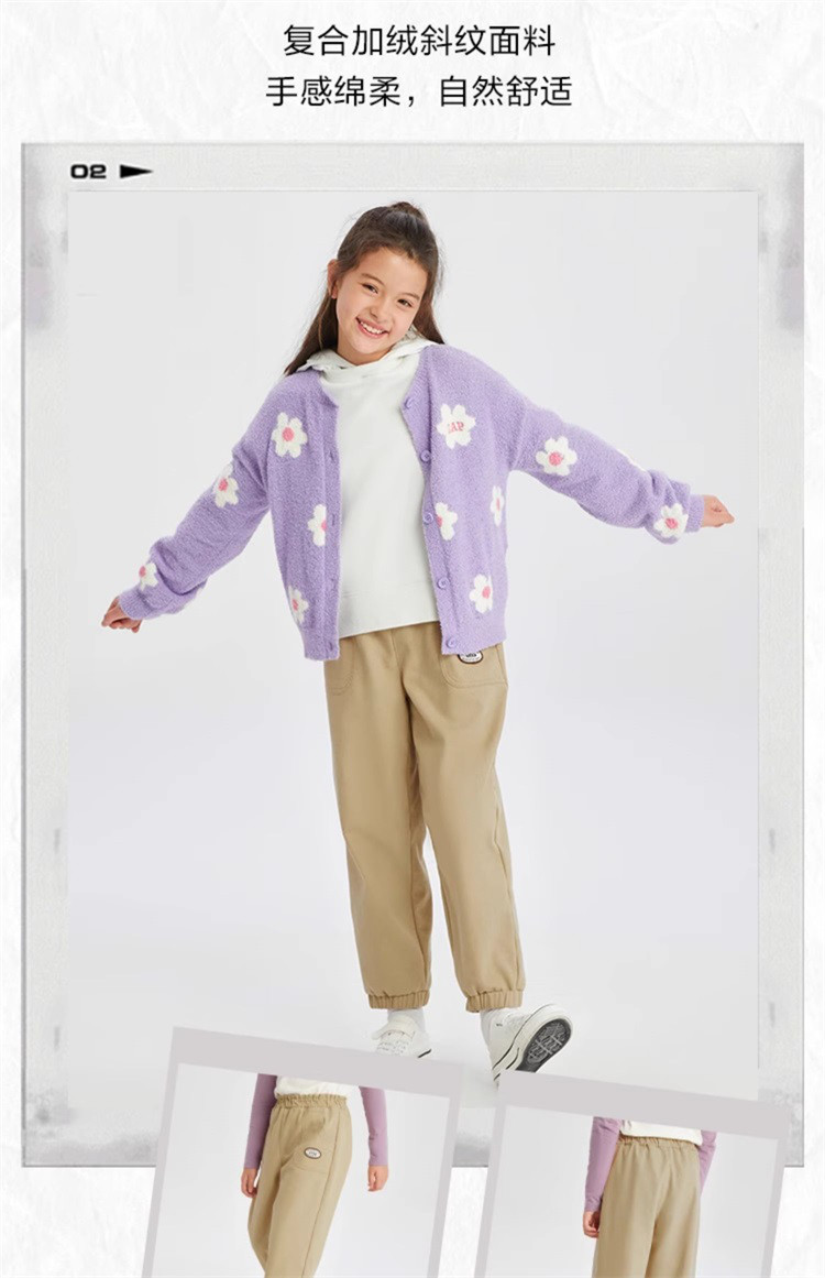 商品名称:Gap女童秋冬LOGO斜纹布束脚裤789284花苞长裤 964122