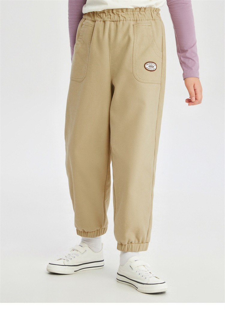 Gap女童秋冬LOGO斜纹布束脚裤789284花苞长裤 964122