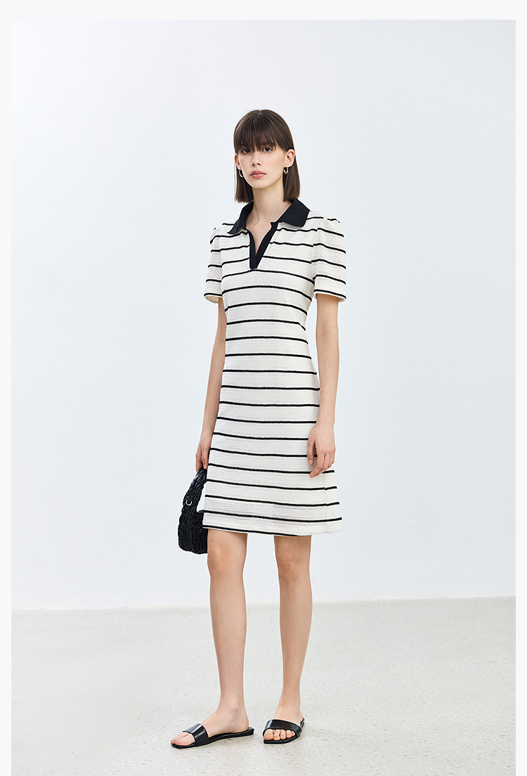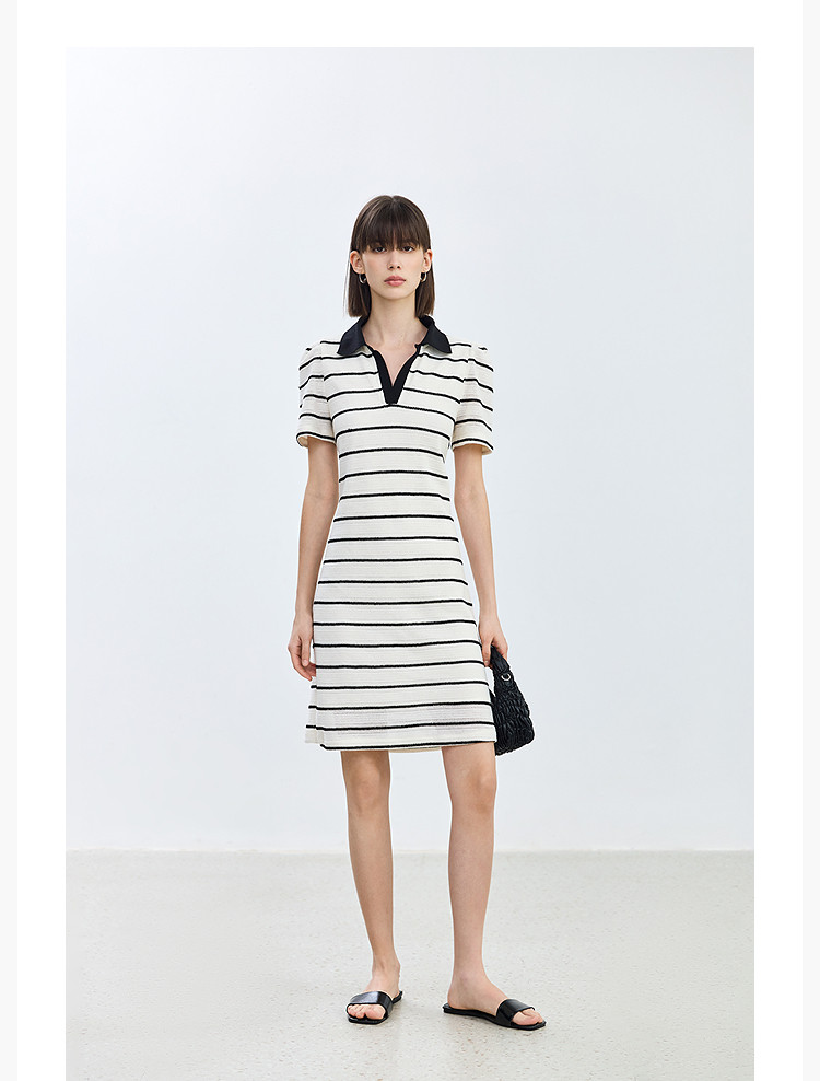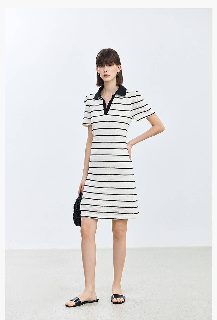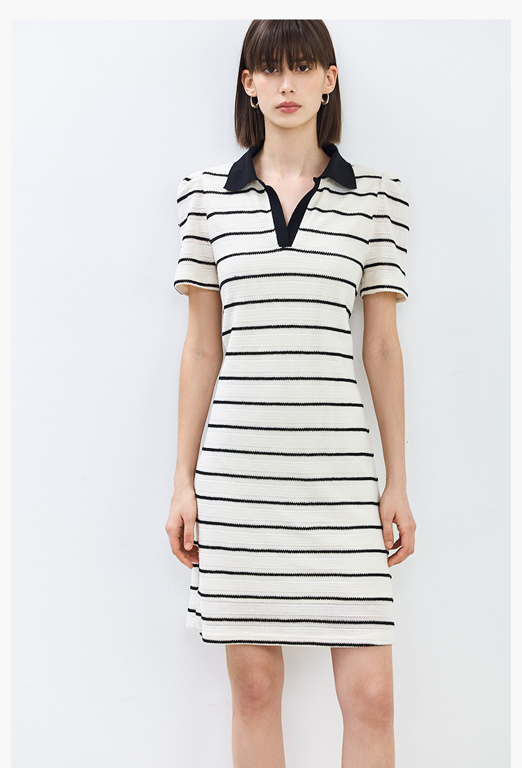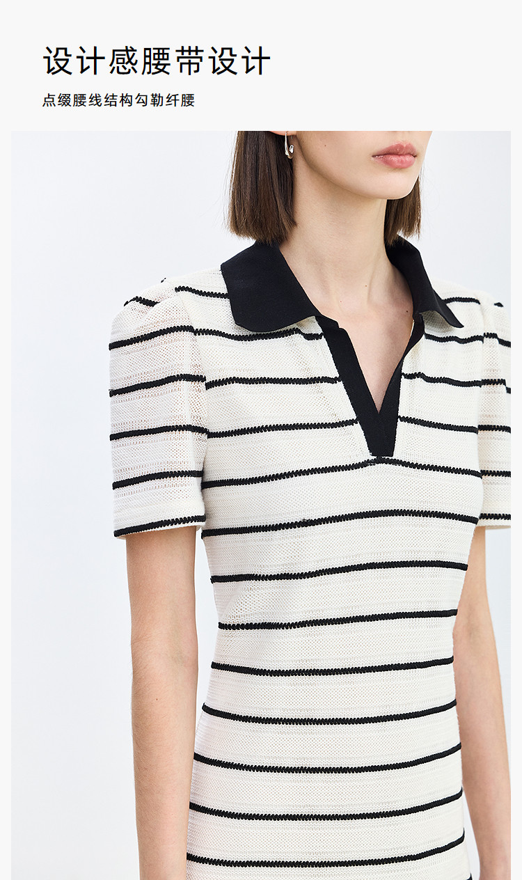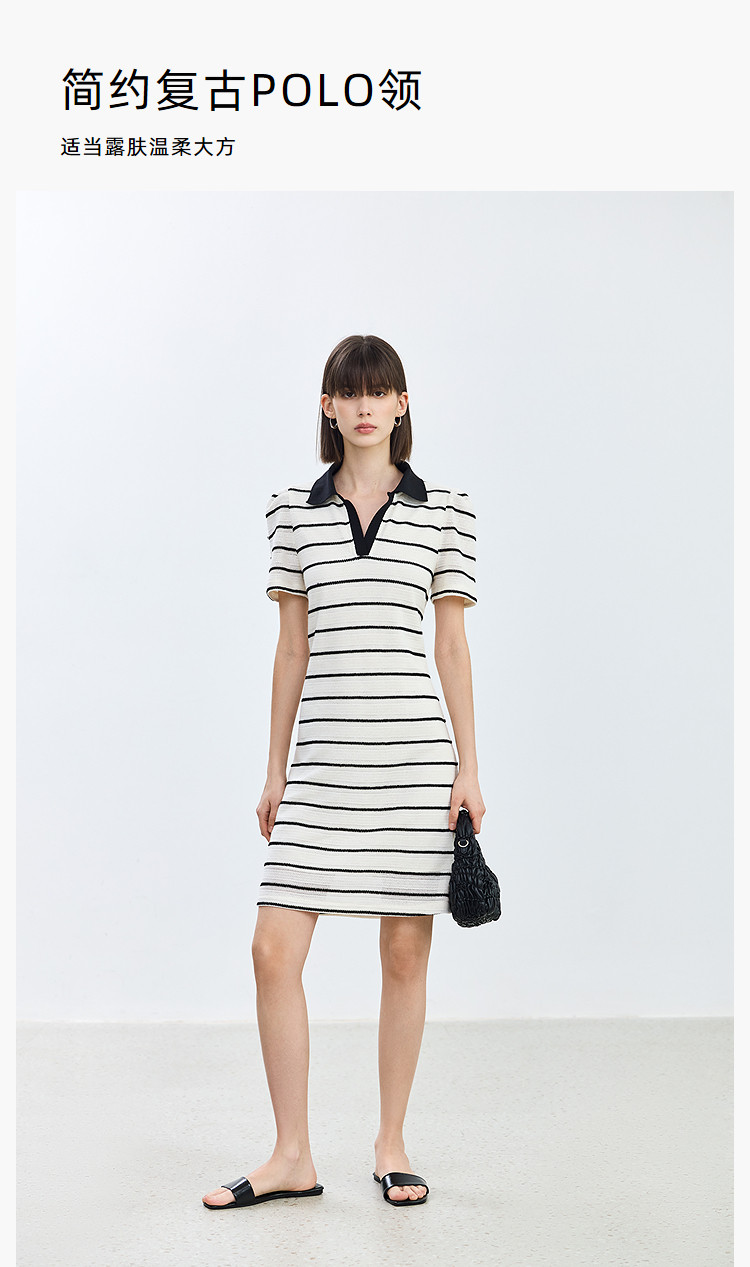 商品名称:夏季女舒适全棉复古条纹显瘦POLO连衣裙子女 062875