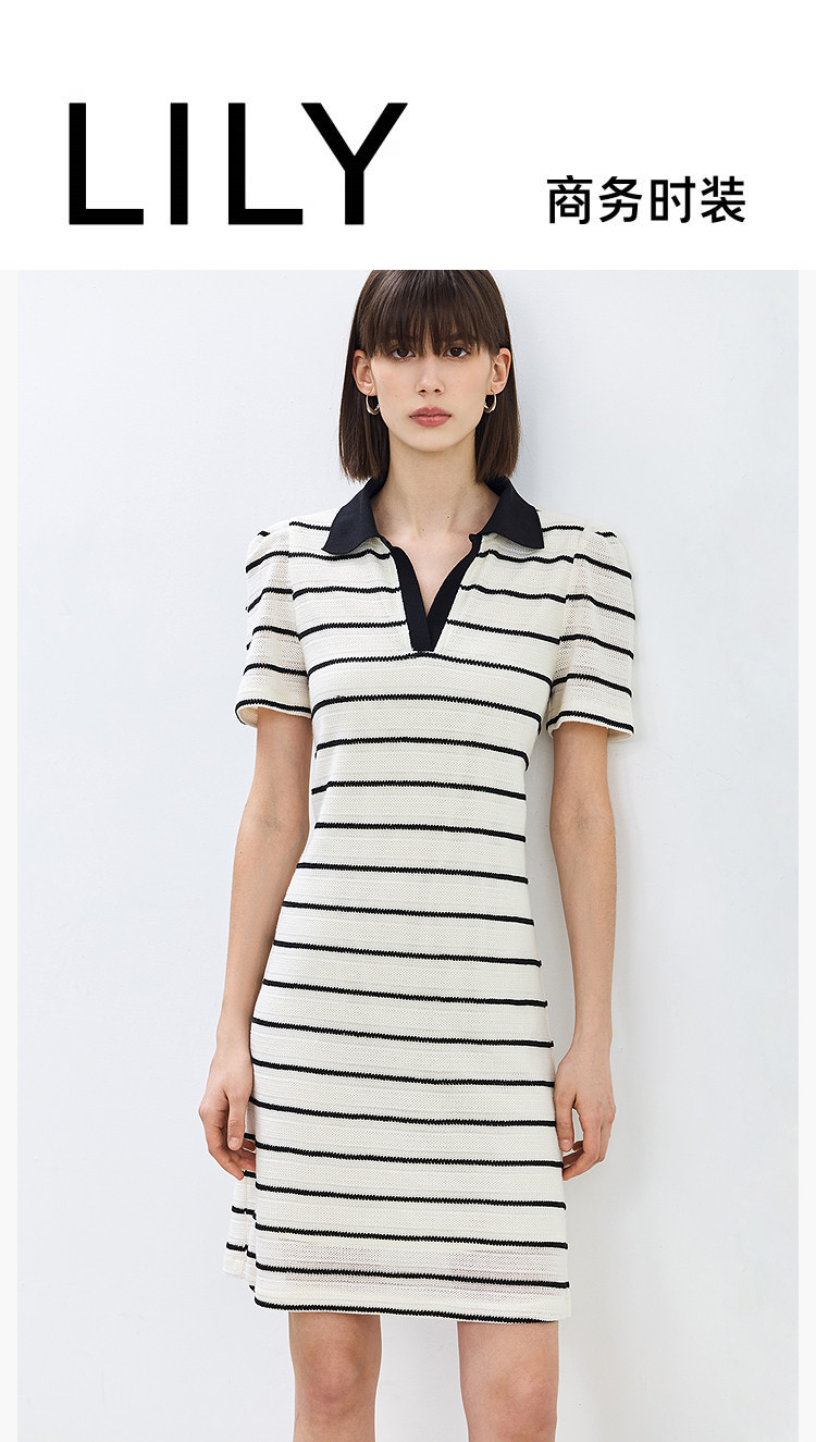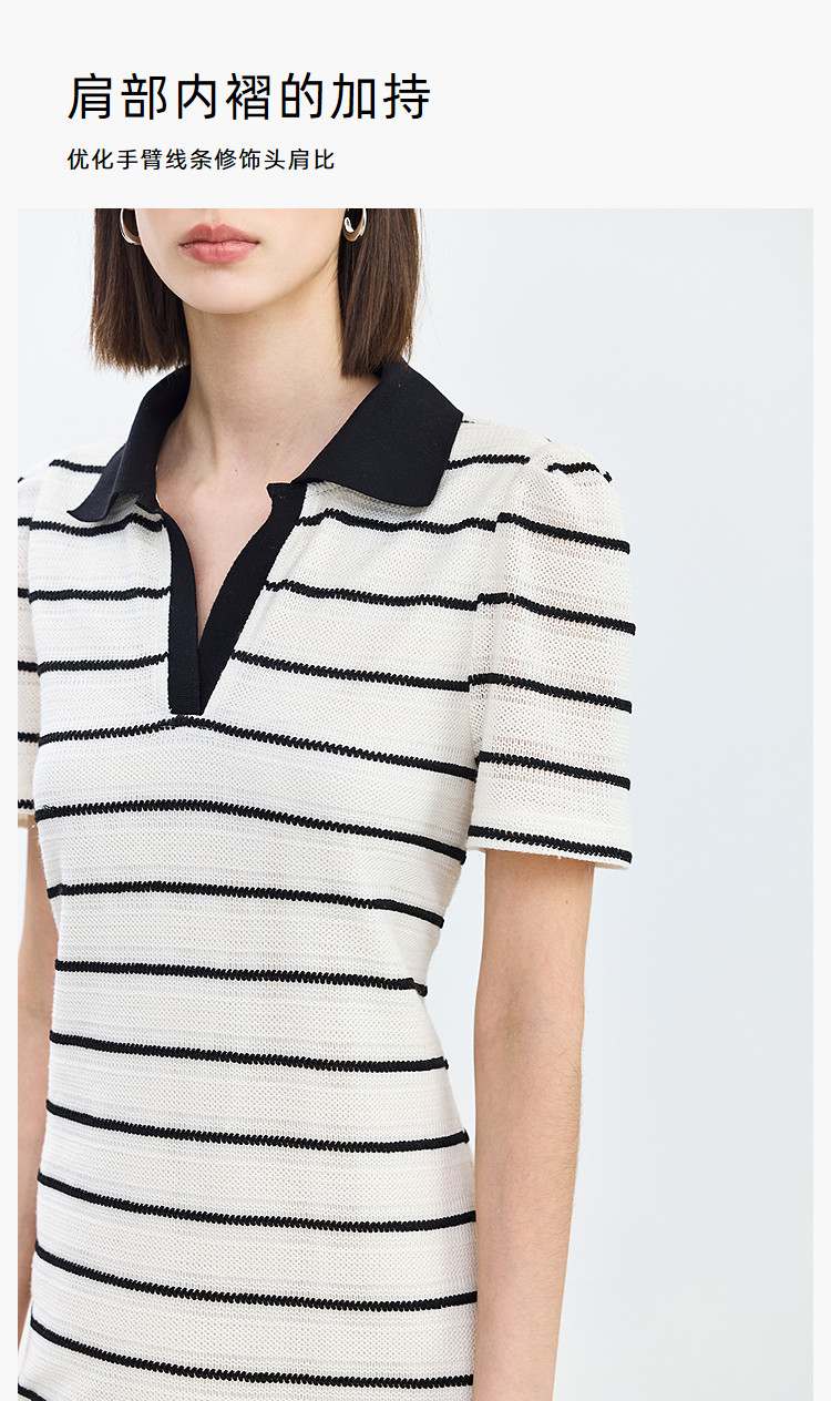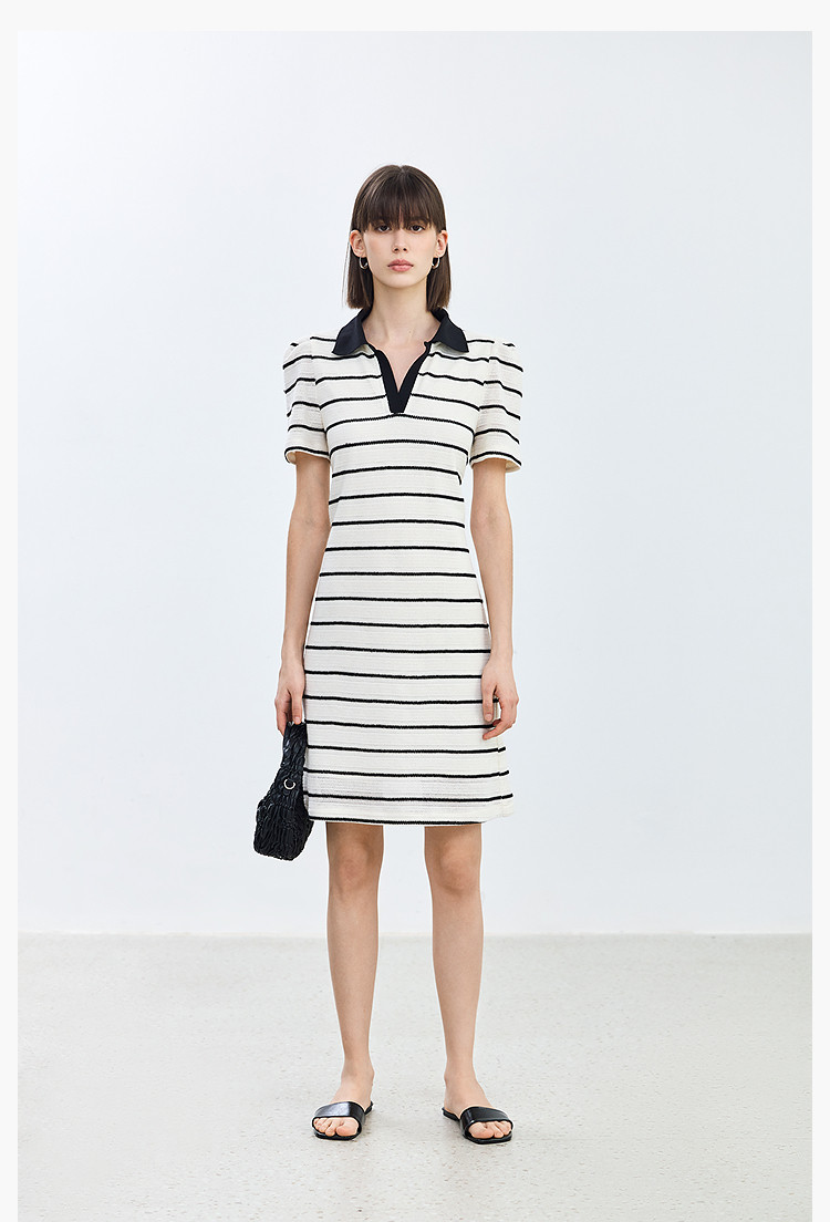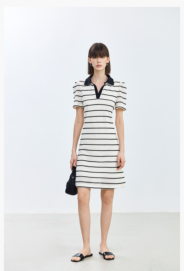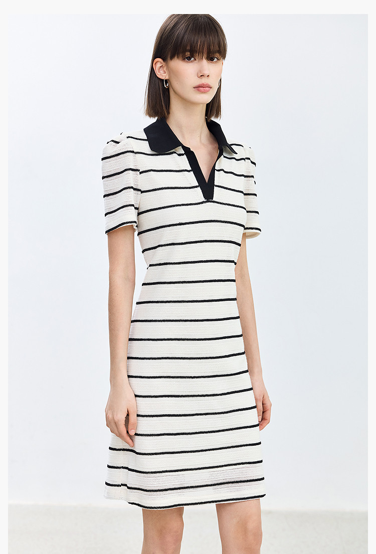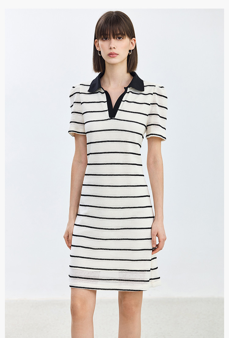 商品名称:夏季女舒适全棉复古条纹显瘦POLO连衣裙子女 062875