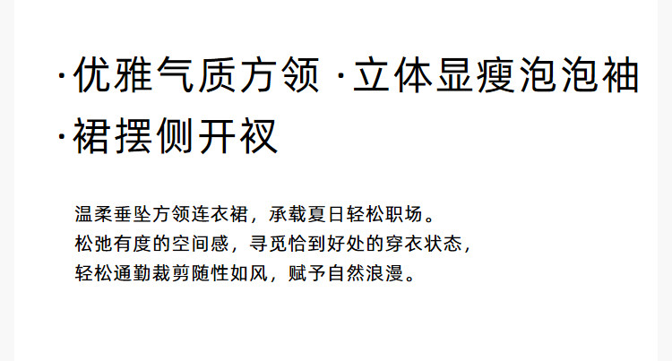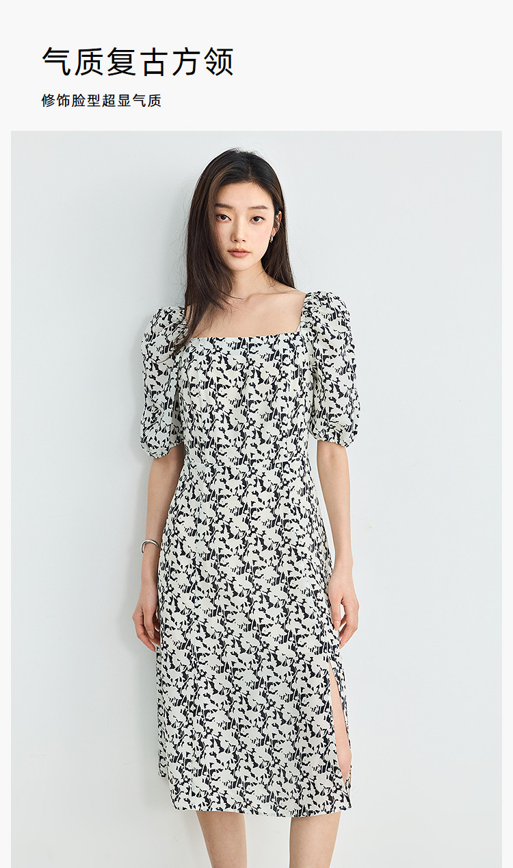 商品名称:夏季浪漫气质印花法式复古方领通勤长款高腰连衣裙 337627
