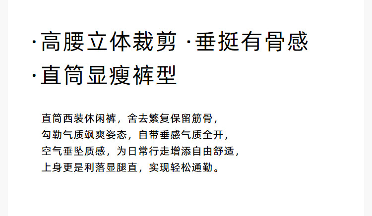 商品名称:【春季款】商务通勤气质时尚显瘦高腰直筒阔腿西装休闲裤 076891