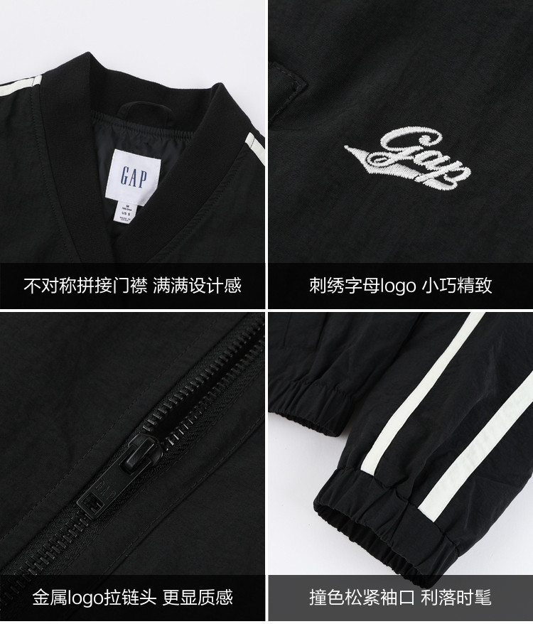 商品名称:Gap女装春季尼龙不对称门襟撞色logo短款夹克外套872713 581786