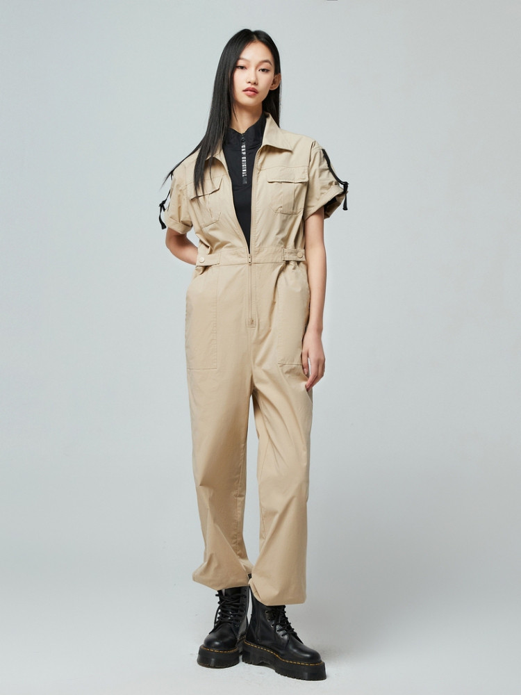 Gap女装夏季多口袋工装风收腰连体裤短袖休闲裤477876 202778