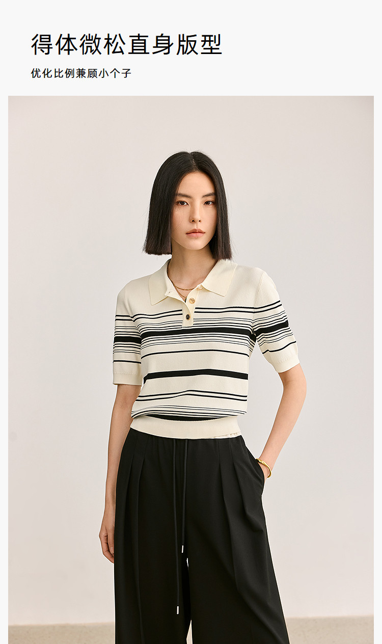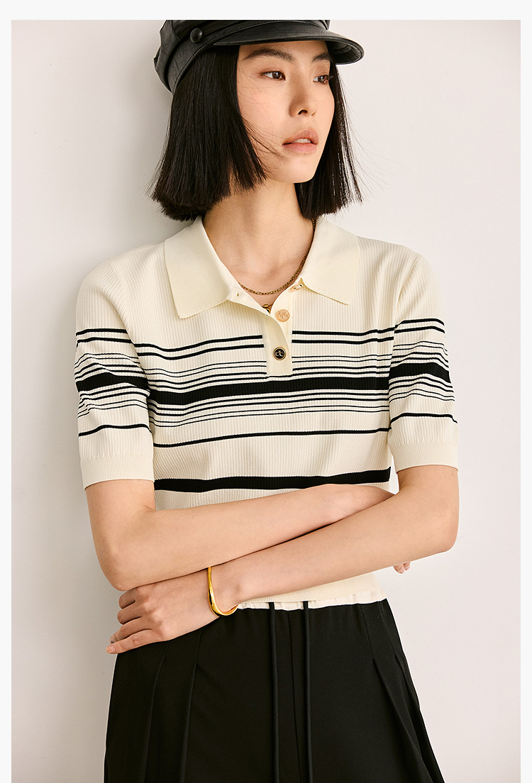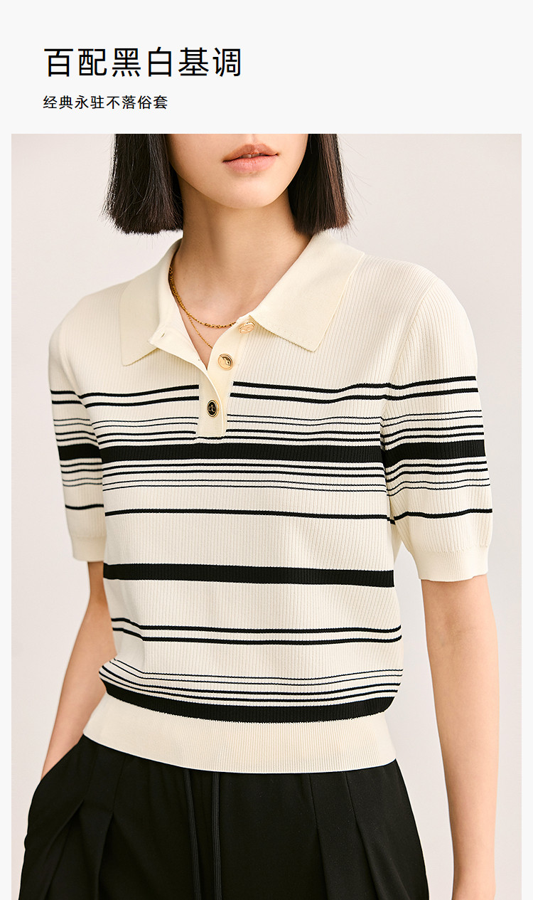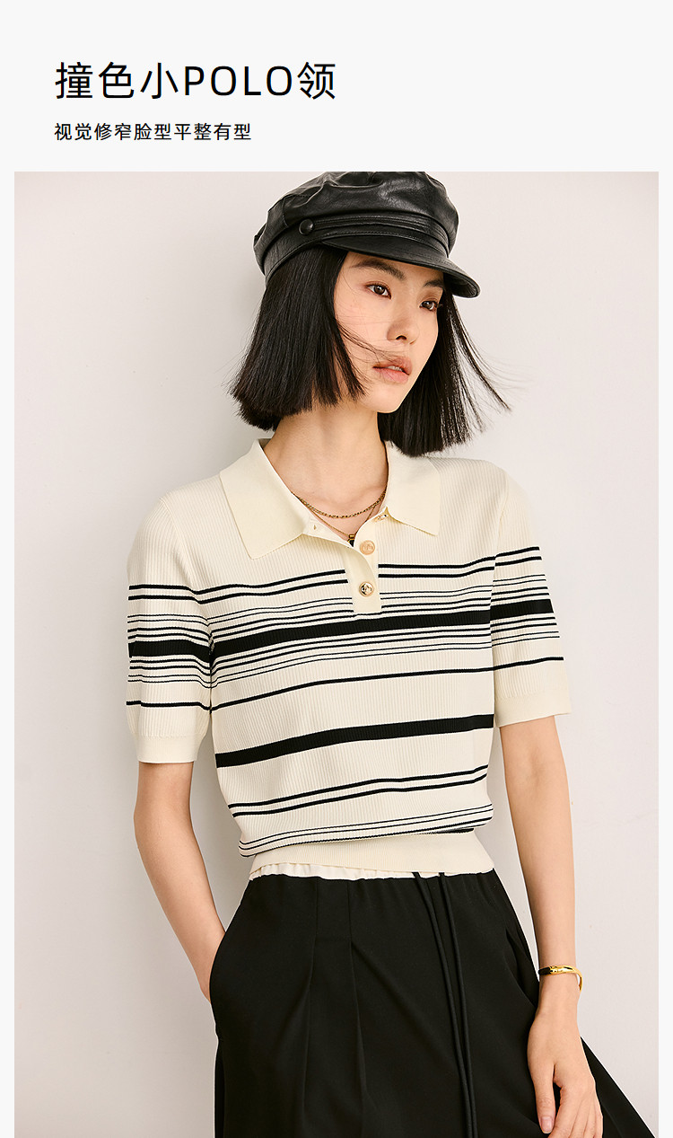 商品名称:【春季】复古条纹休闲通勤款都市气质修身POLO针织衫 458779