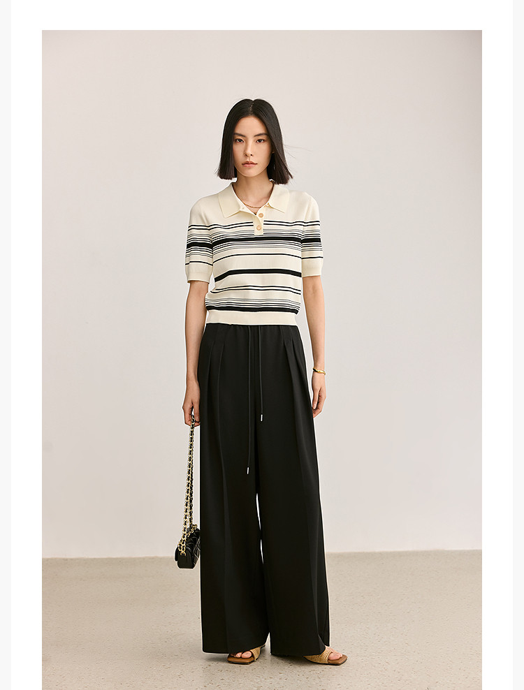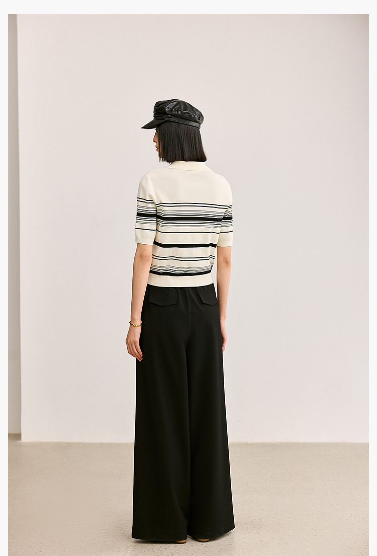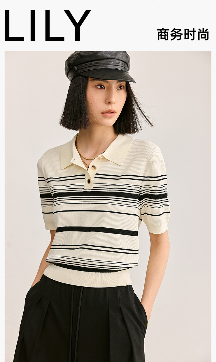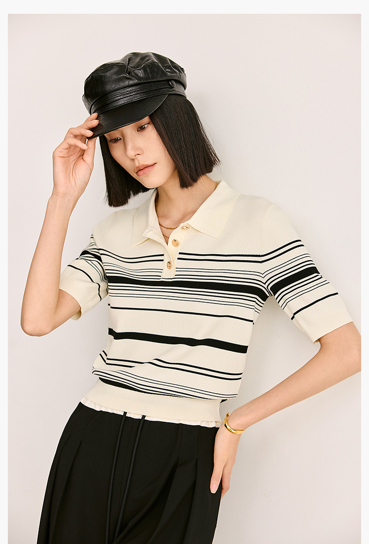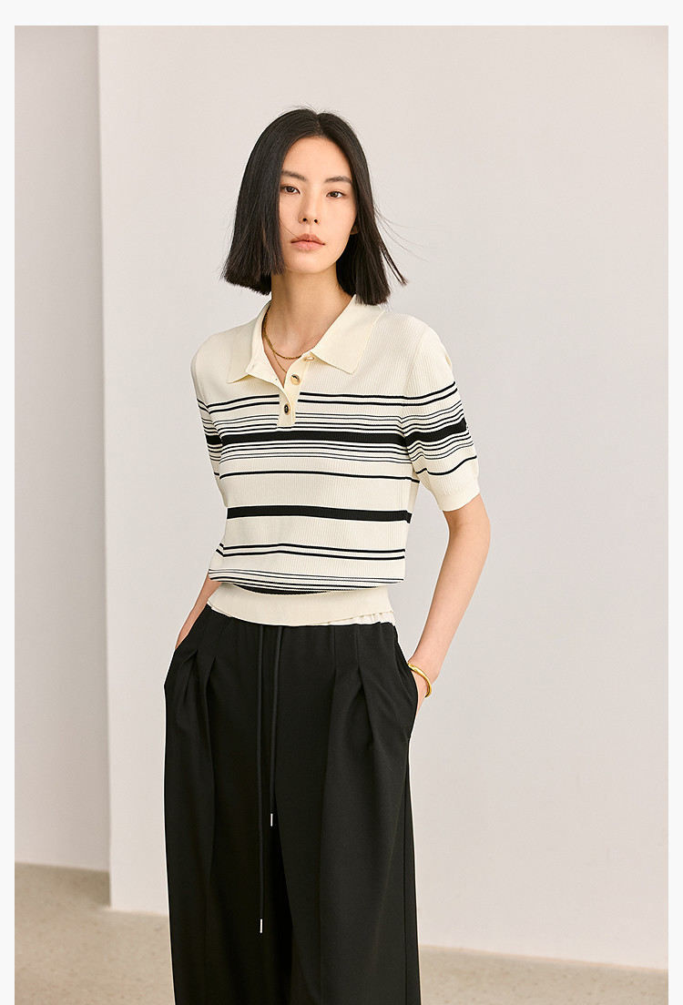 商品名称:【春季】复古条纹休闲通勤款都市气质修身POLO针织衫 458779