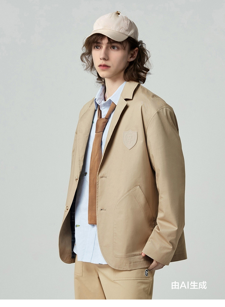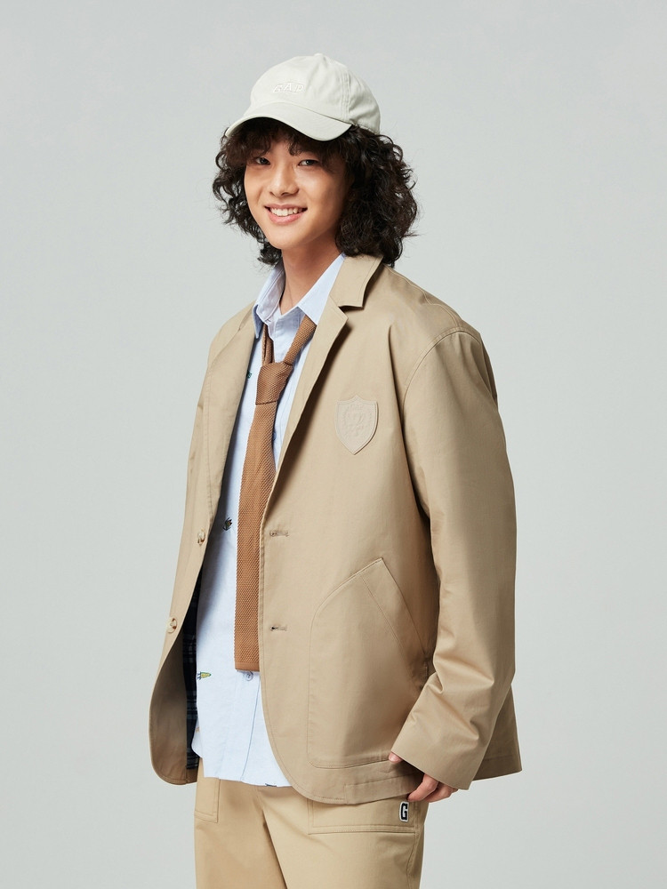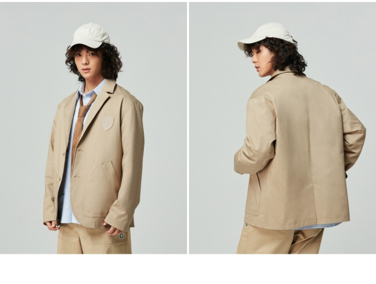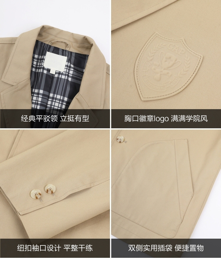 商品名称:Gap男女装春季学院风徽章平驳领西装插袋休闲外套877545 346266