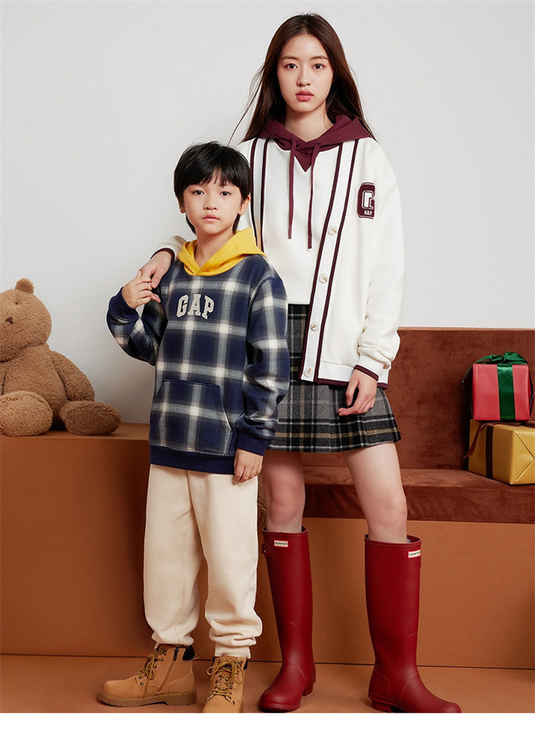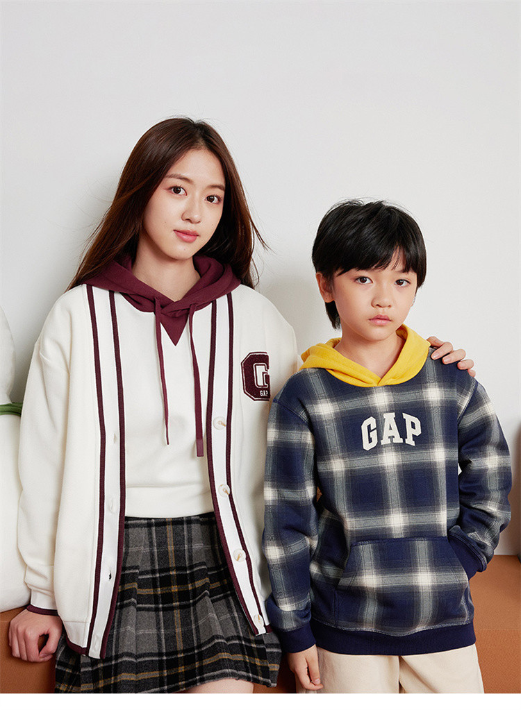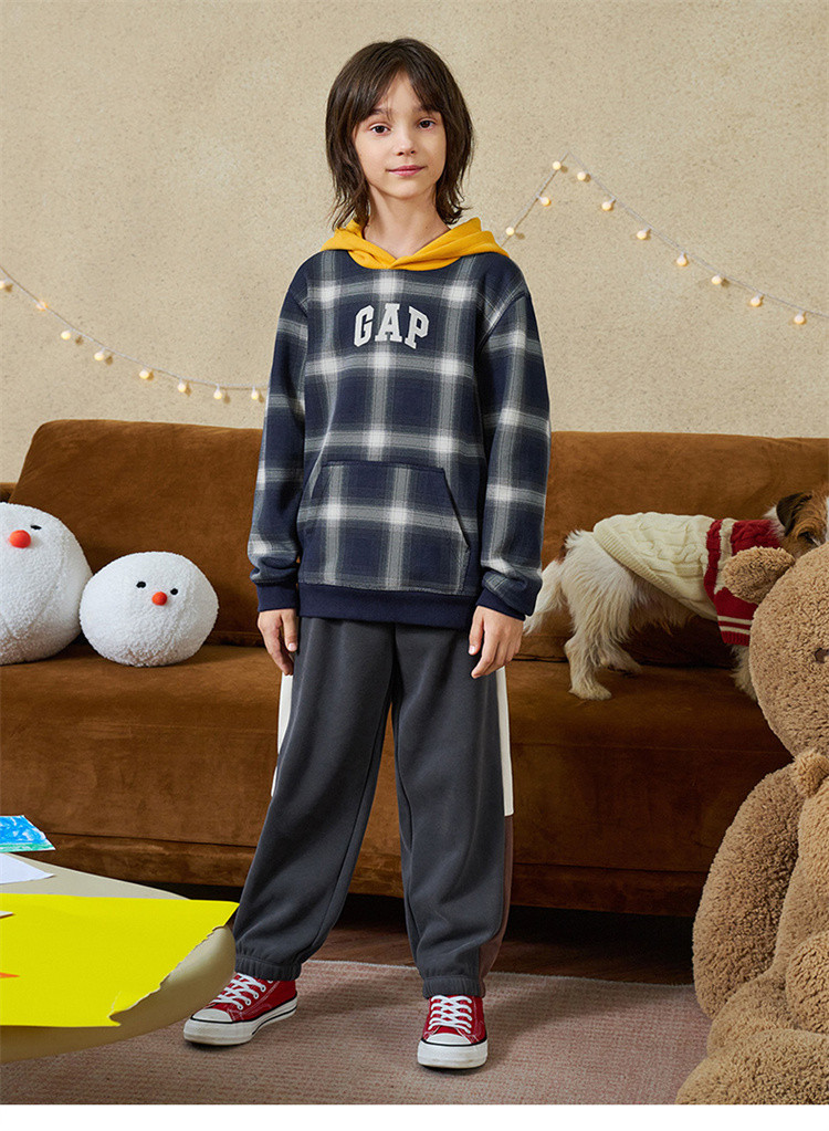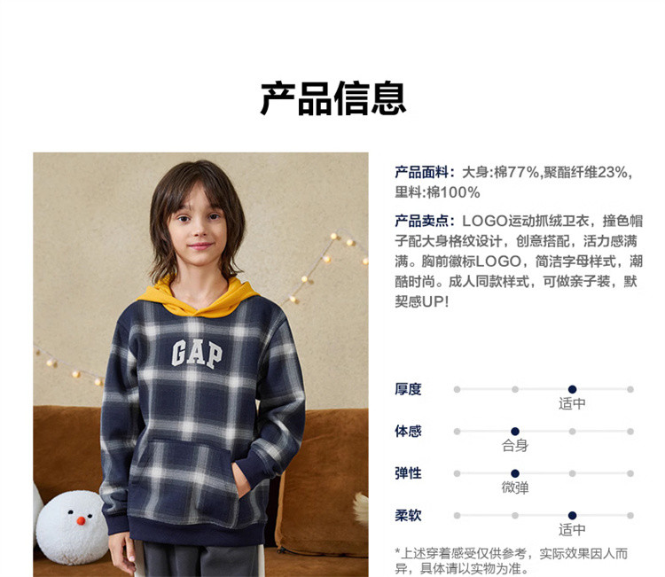 商品名称:Gap男童冬季LOGO碳素软磨抓绒保暖卫衣休闲格纹运动连帽衫836849 619546