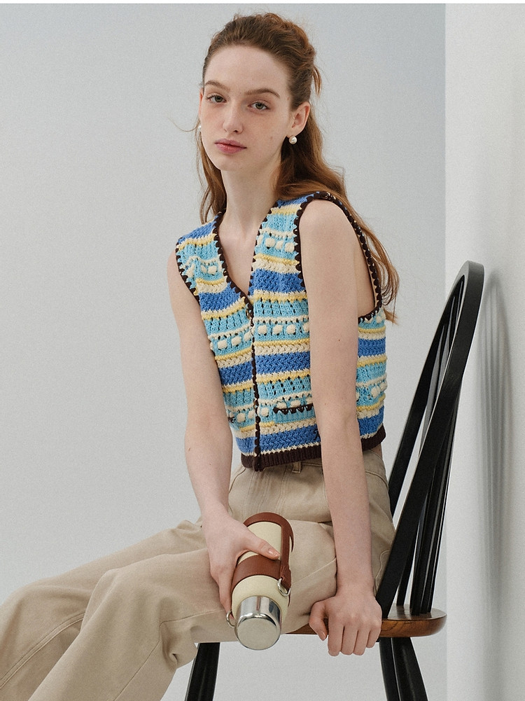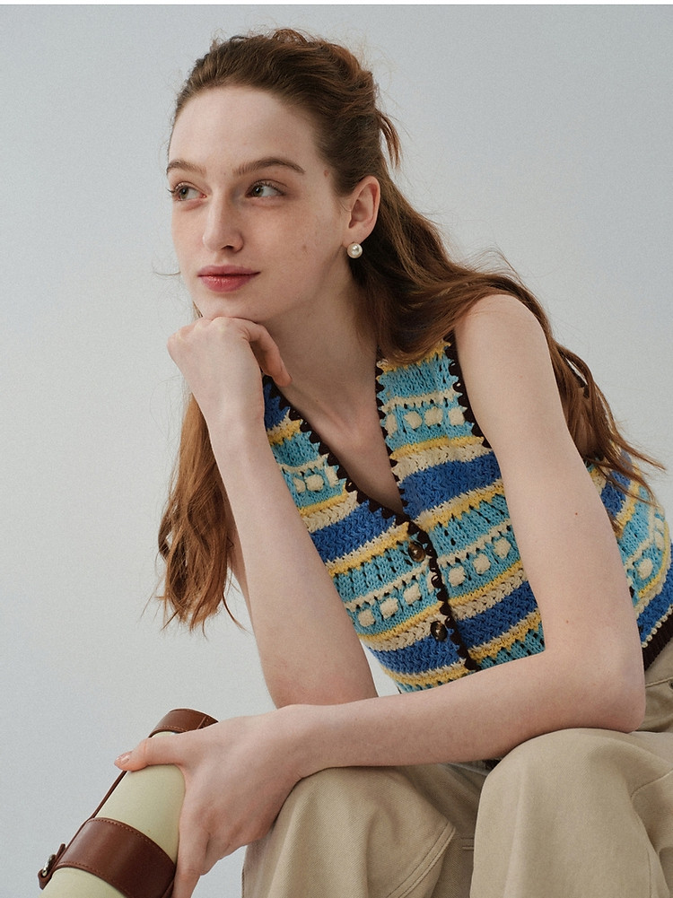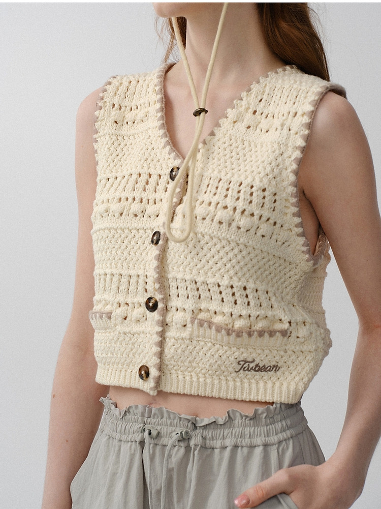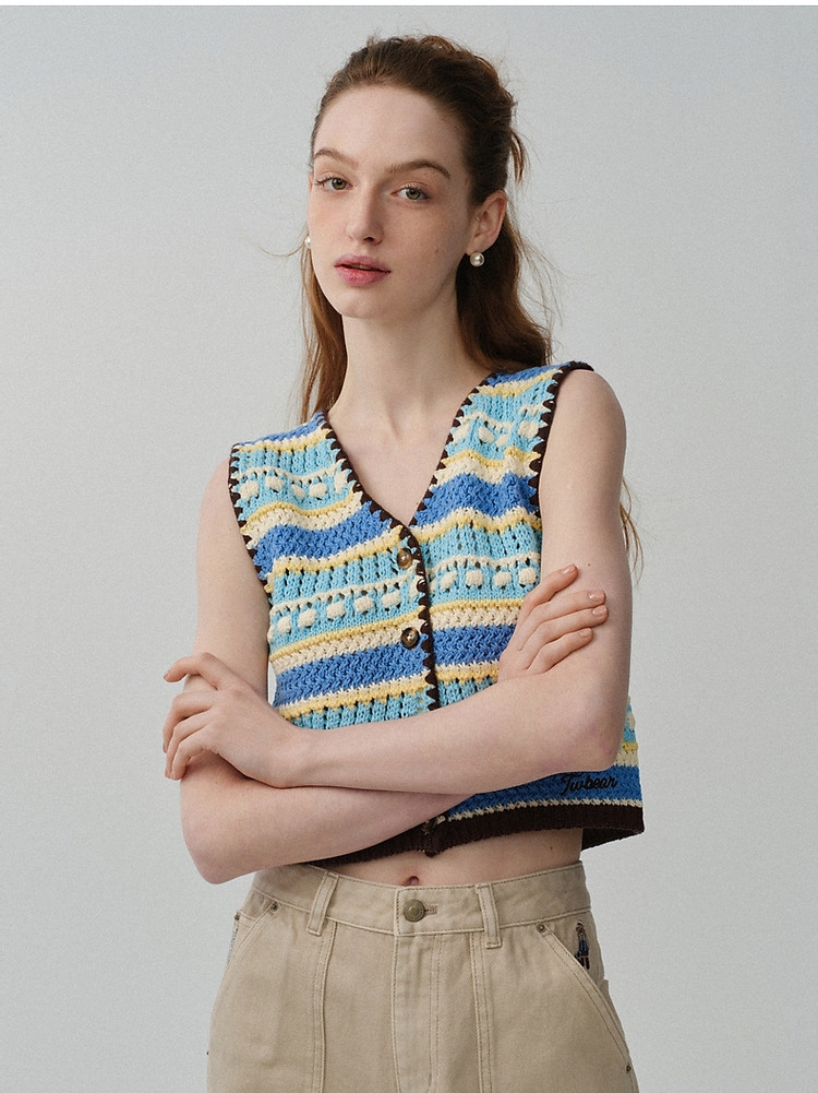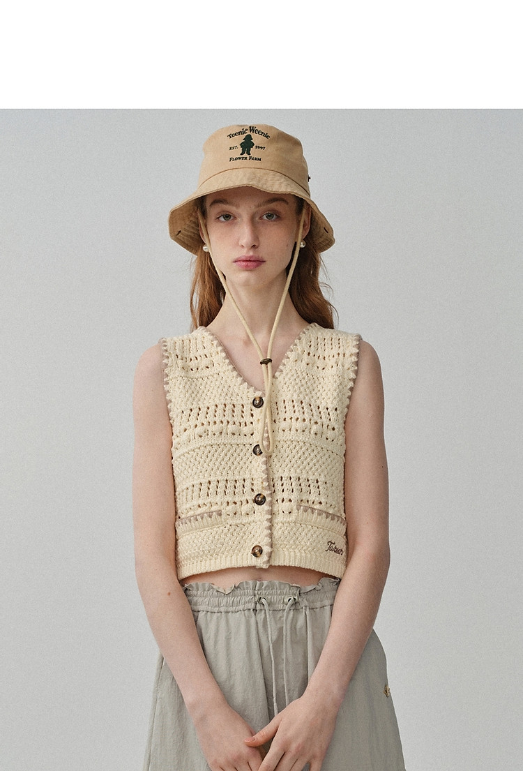 商品名称:小熊女装V领镂空开衫马甲无袖针织开衫 794369