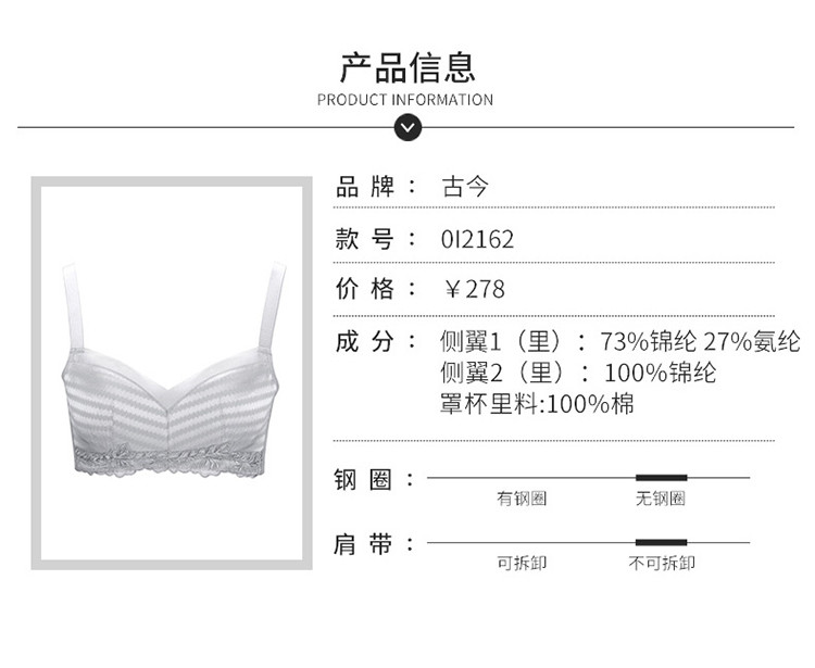 商品名称:【大胸显小】无钢圈文胸夏季薄款纯棉里杯防凸点聚拢侧收内衣文胸 198795