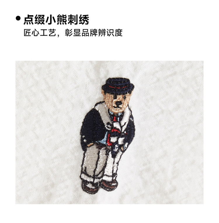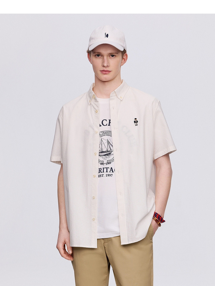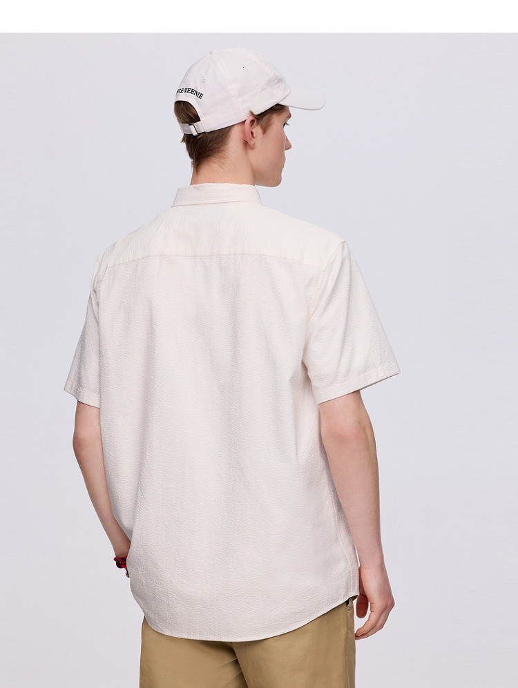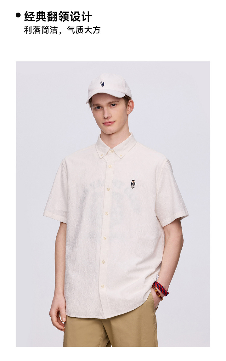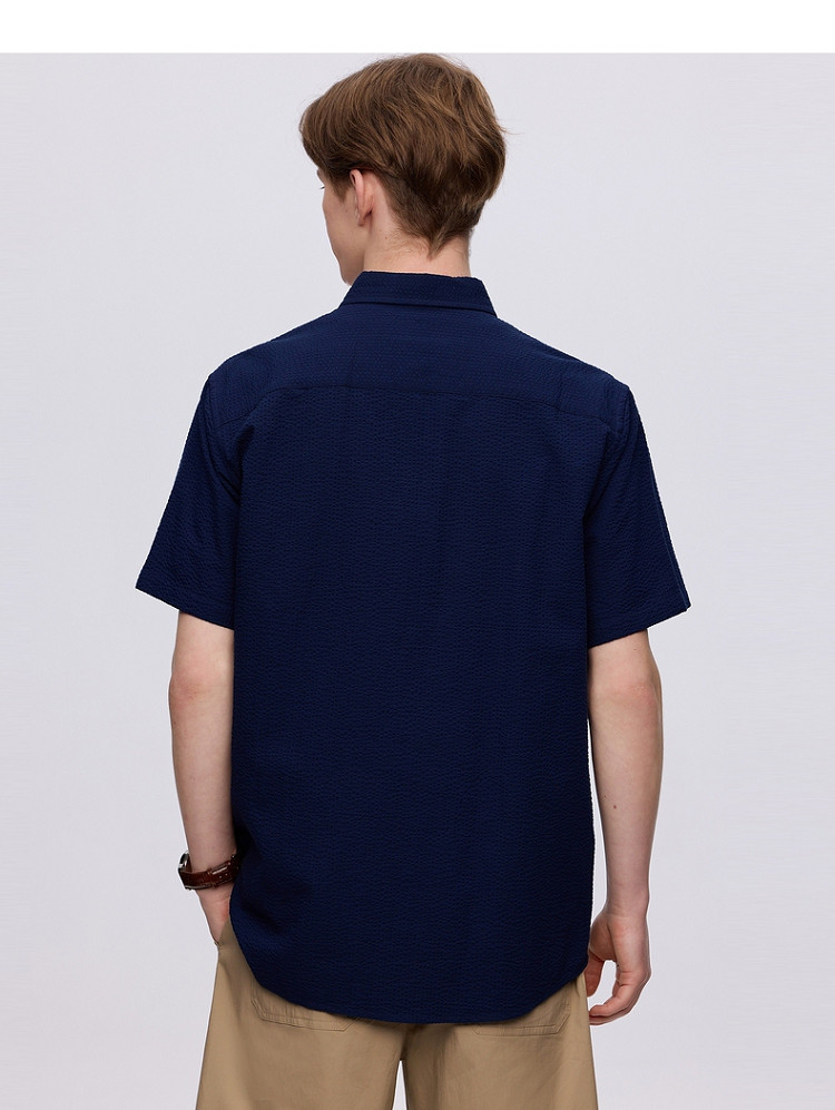 商品名称:小熊男装简约舒适时尚潮流休闲泡泡纱衬衫男夏季翻领衬衫男短袖 674241
