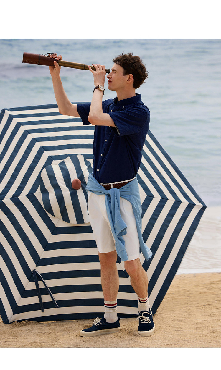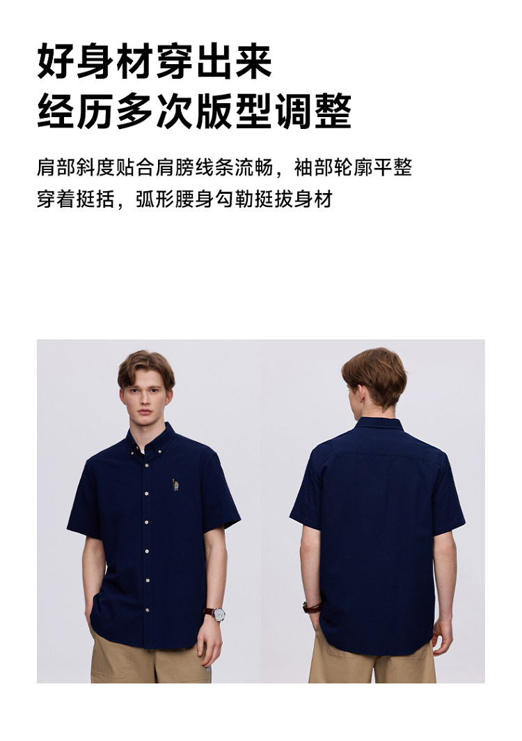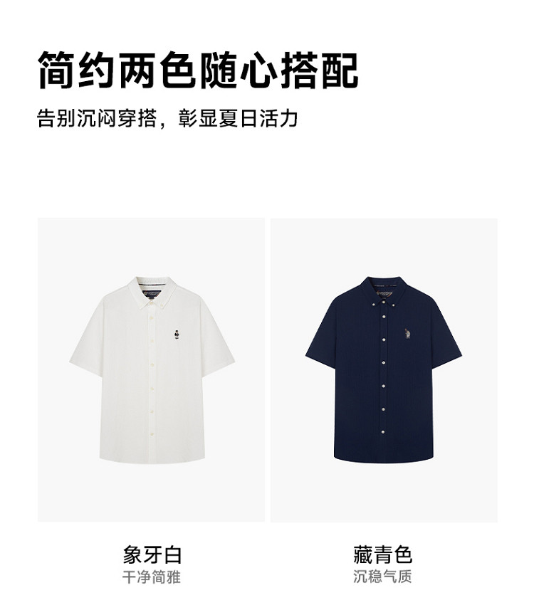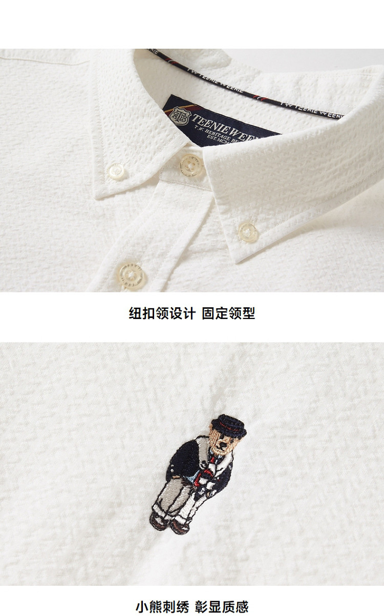商品名称:小熊男装简约舒适时尚潮流休闲泡泡纱衬衫男夏季翻领衬衫男短袖 674241