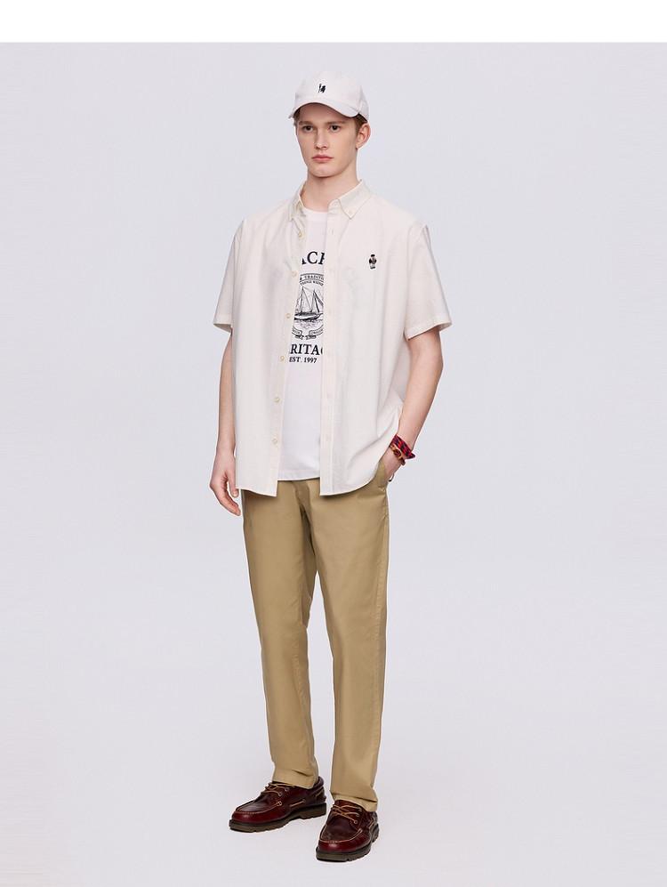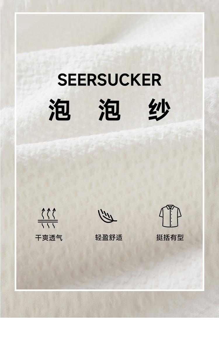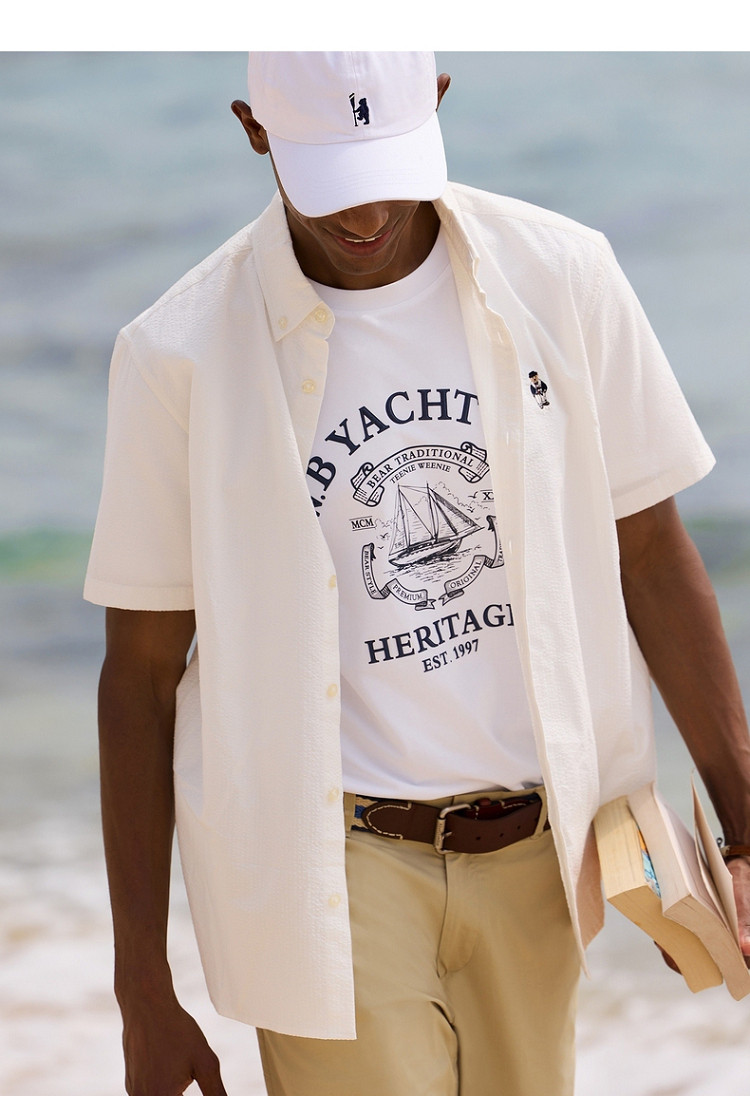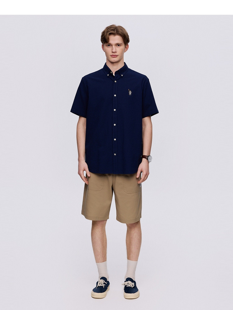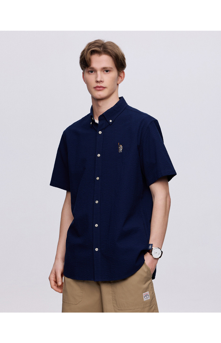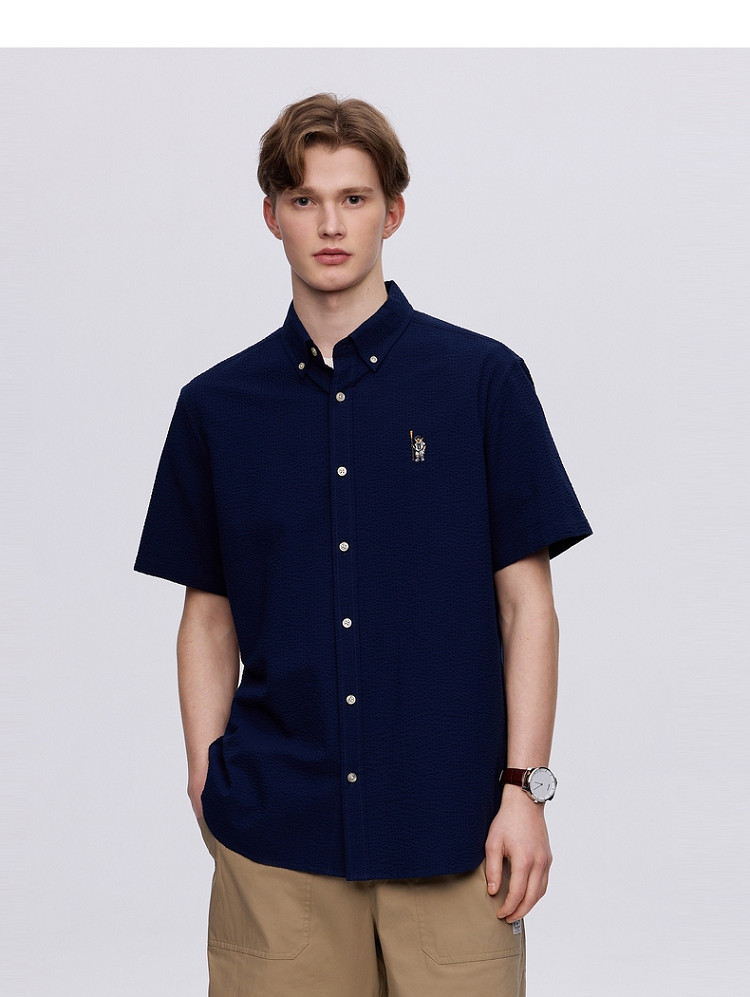 小熊男装简约舒适时尚潮流休闲泡泡纱衬衫男夏季翻领衬衫男短袖 674241
