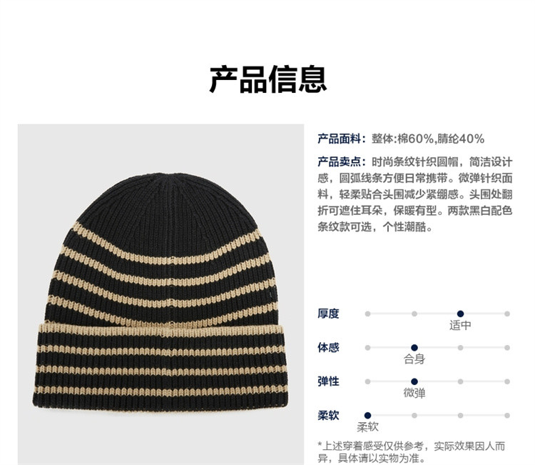 商品名称:Gap男女装春秋季时尚条纹针织小圆帽795371遮耳休闲帽 363226