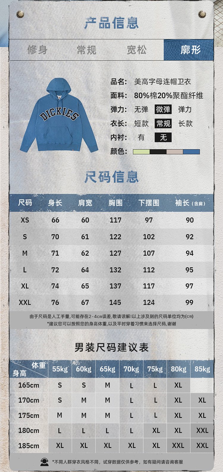 商品名称:Dickies美高字母连帽卫衣校园宽松卫衣男女情侣 486402