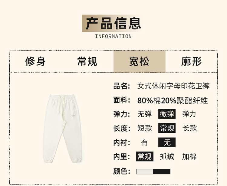 商品名称:Dickies日常 春夏女式字母印花斜插口袋卫裤长裤 467522