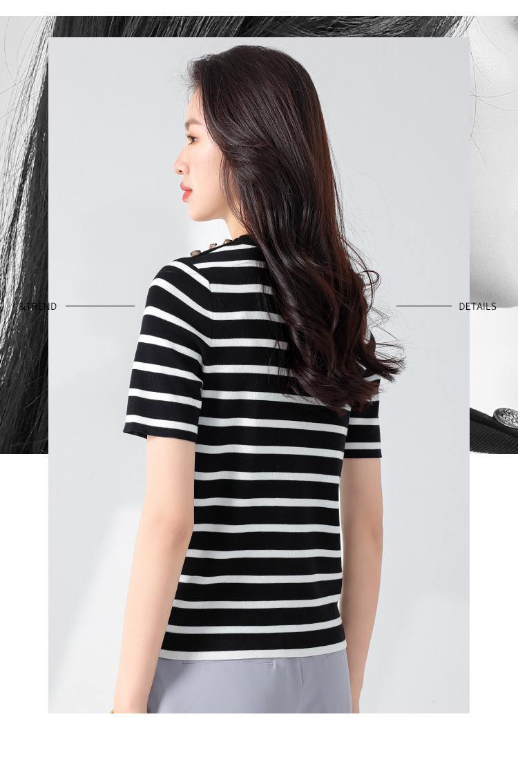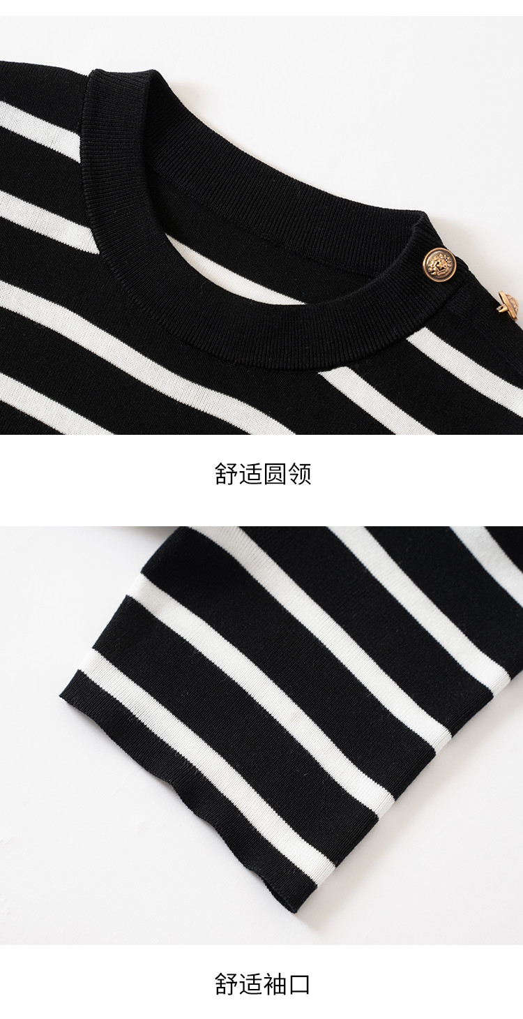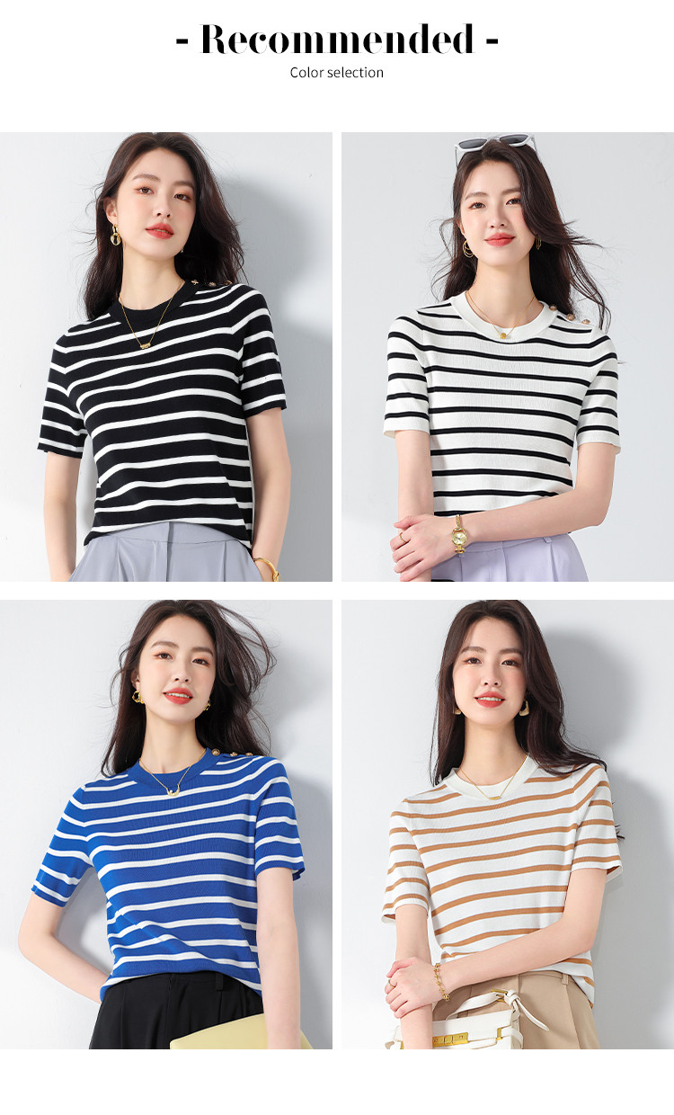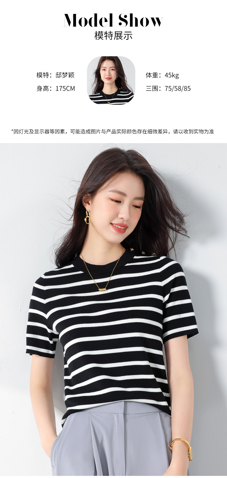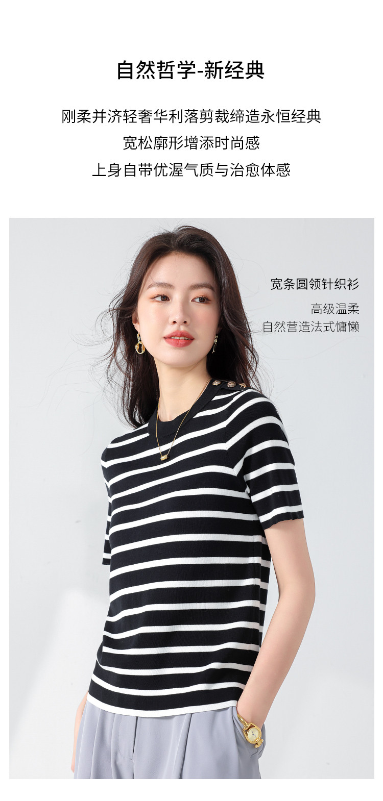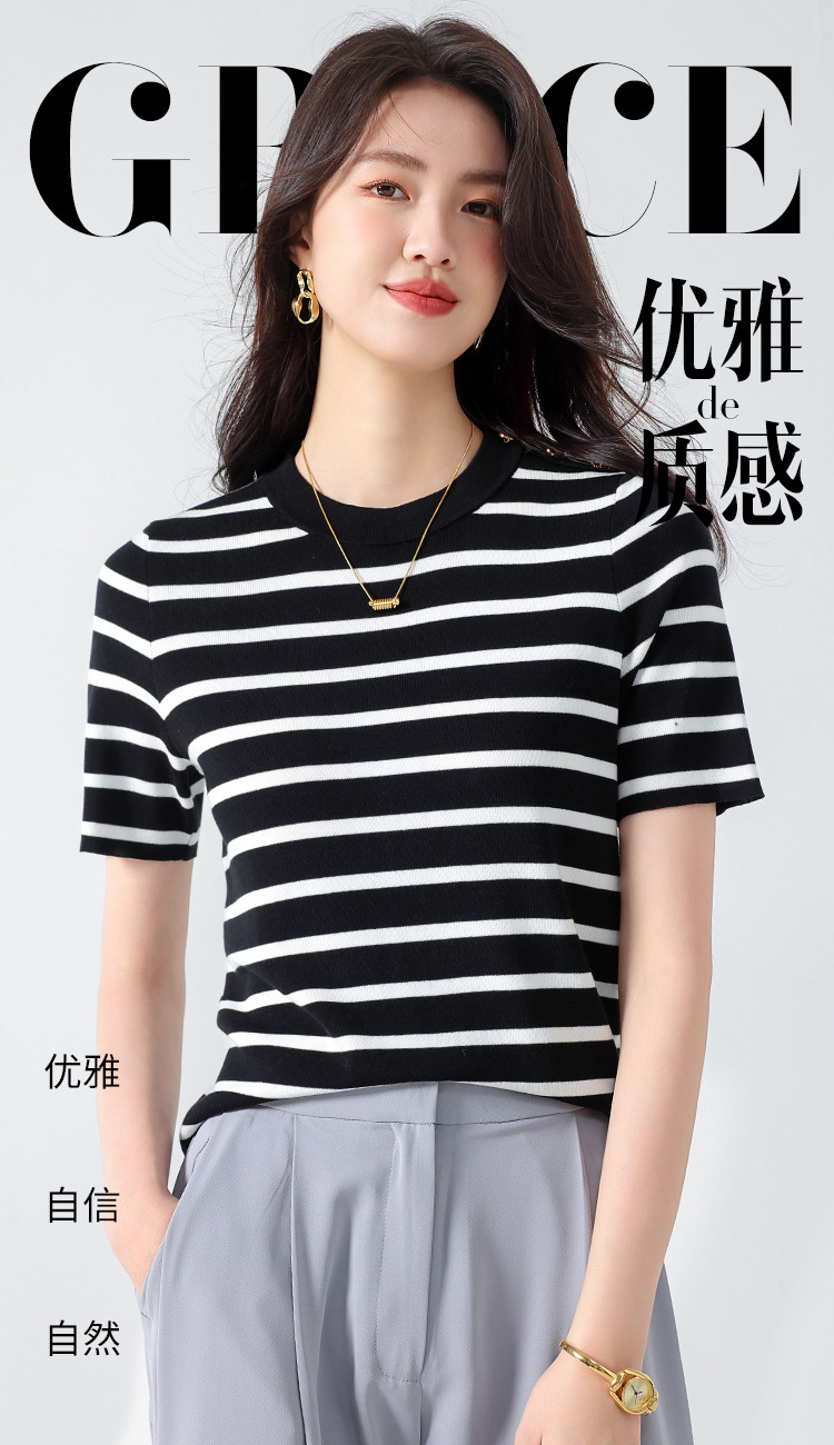 商品名称:【含桑蚕丝】夏经典条纹撞色圆领短袖T恤女针织打底衫 899923