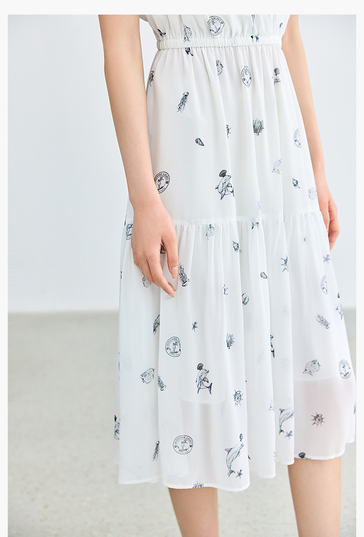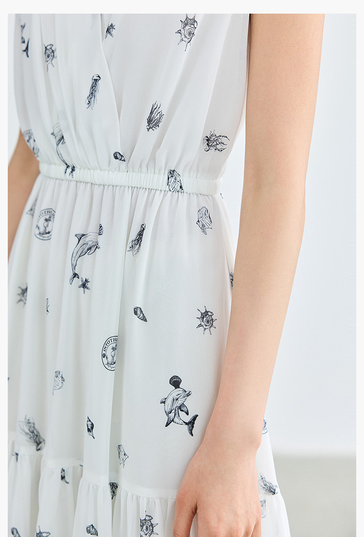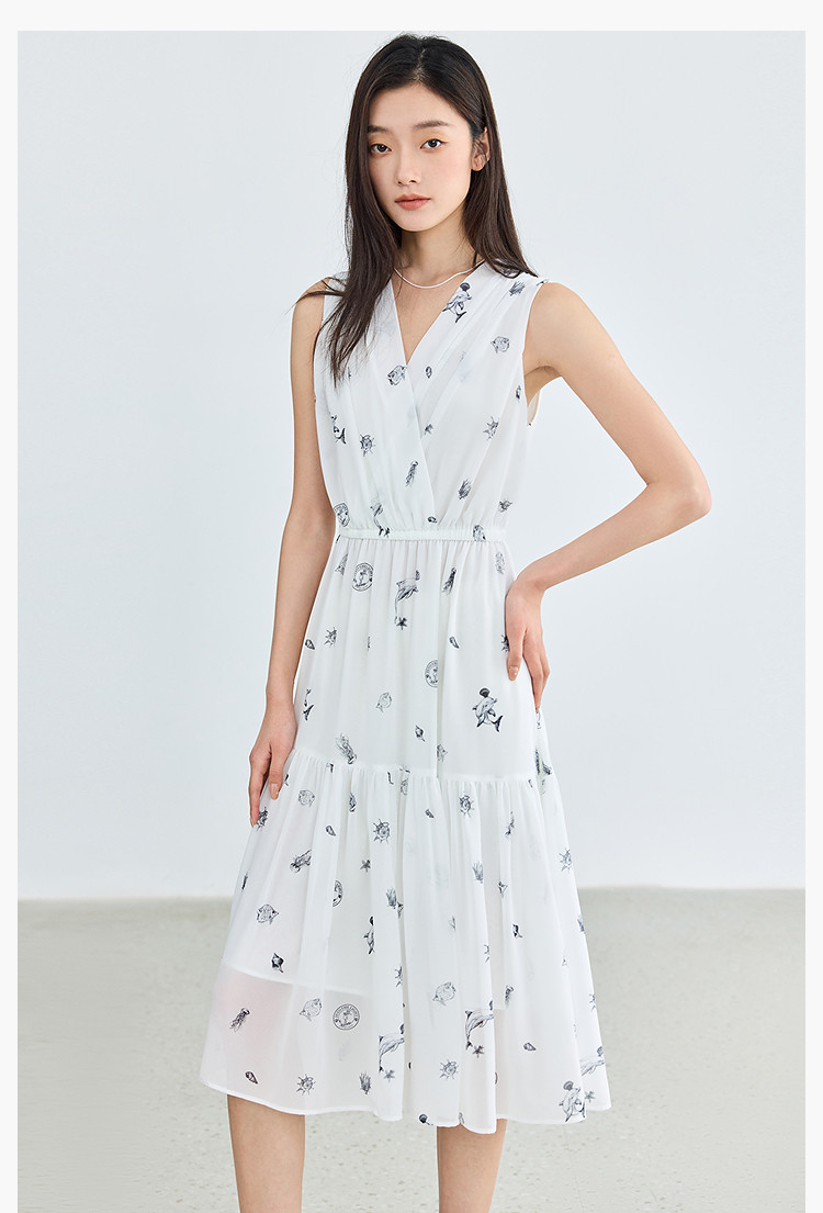 商品名称:夏款小白裙女复古优雅V领无袖印花收腰拼接式茶歇裙连衣裙女 139035