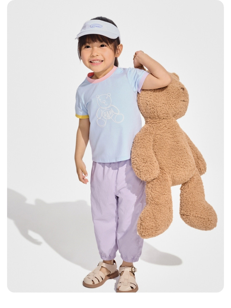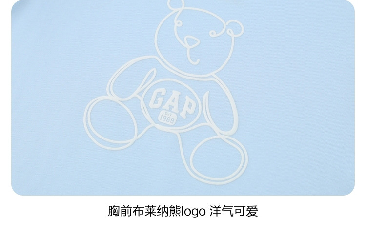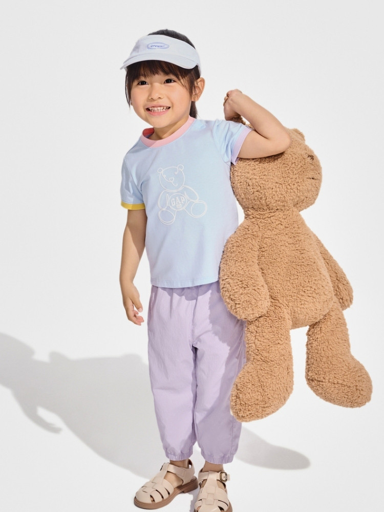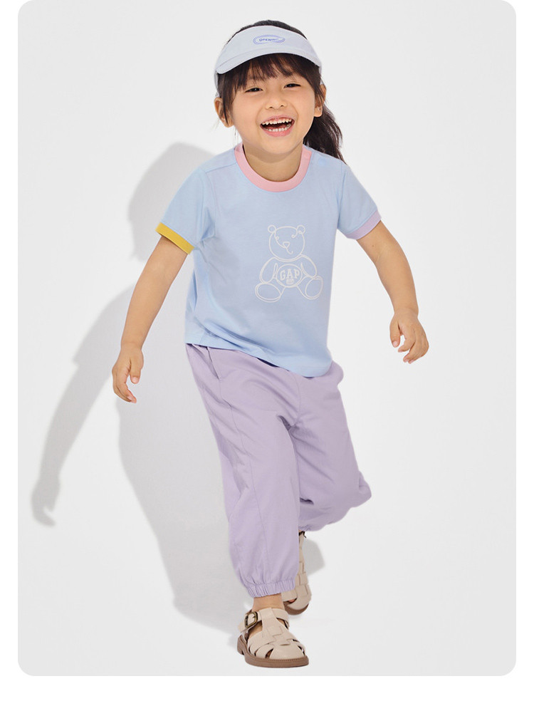 Gap女幼童2024春秋布莱纳熊撞色圆领短袖T恤纯棉上衣892024 903322