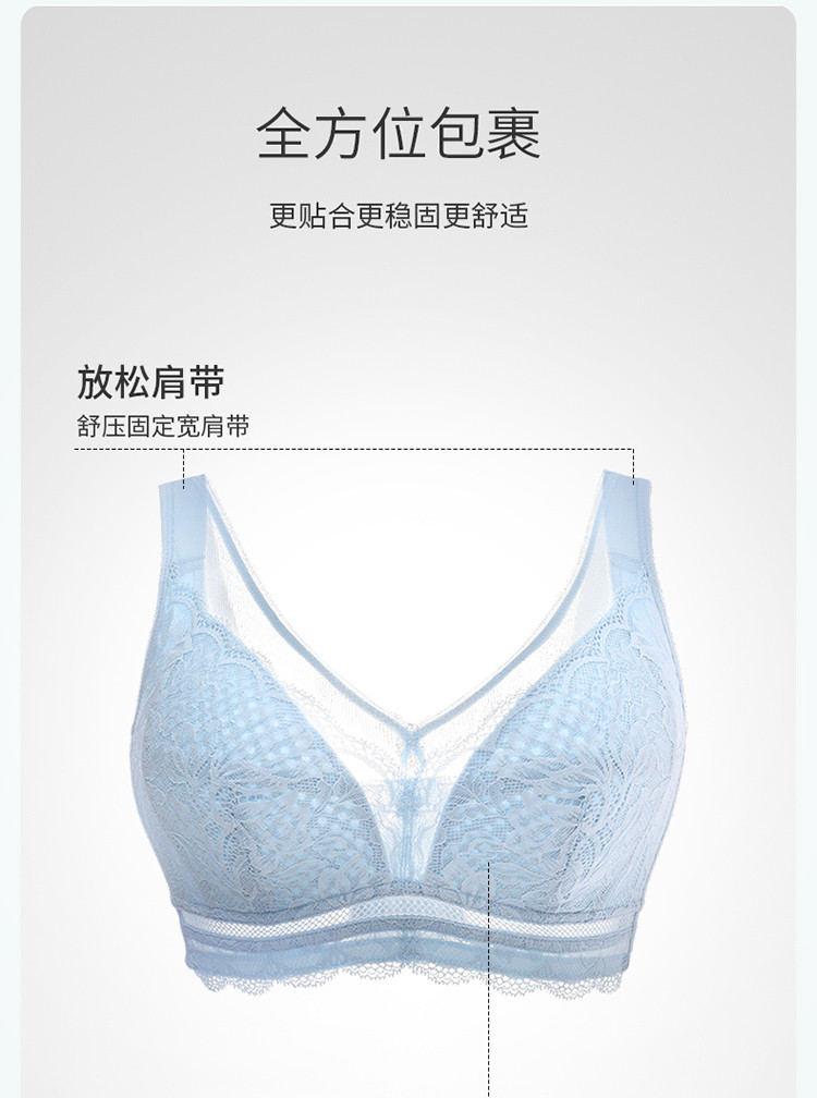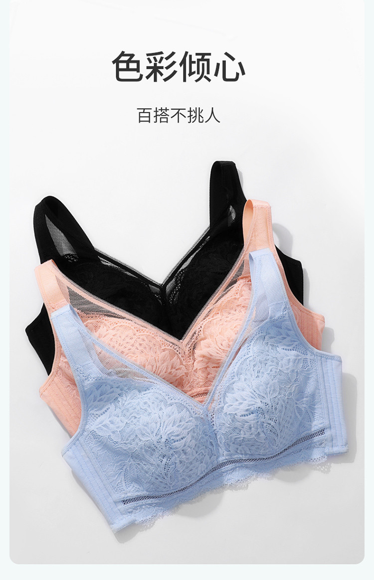 【三明治黑科技】薄透气无钢圈大胸显小防下垂美背内衣女文胸罩夏 366686