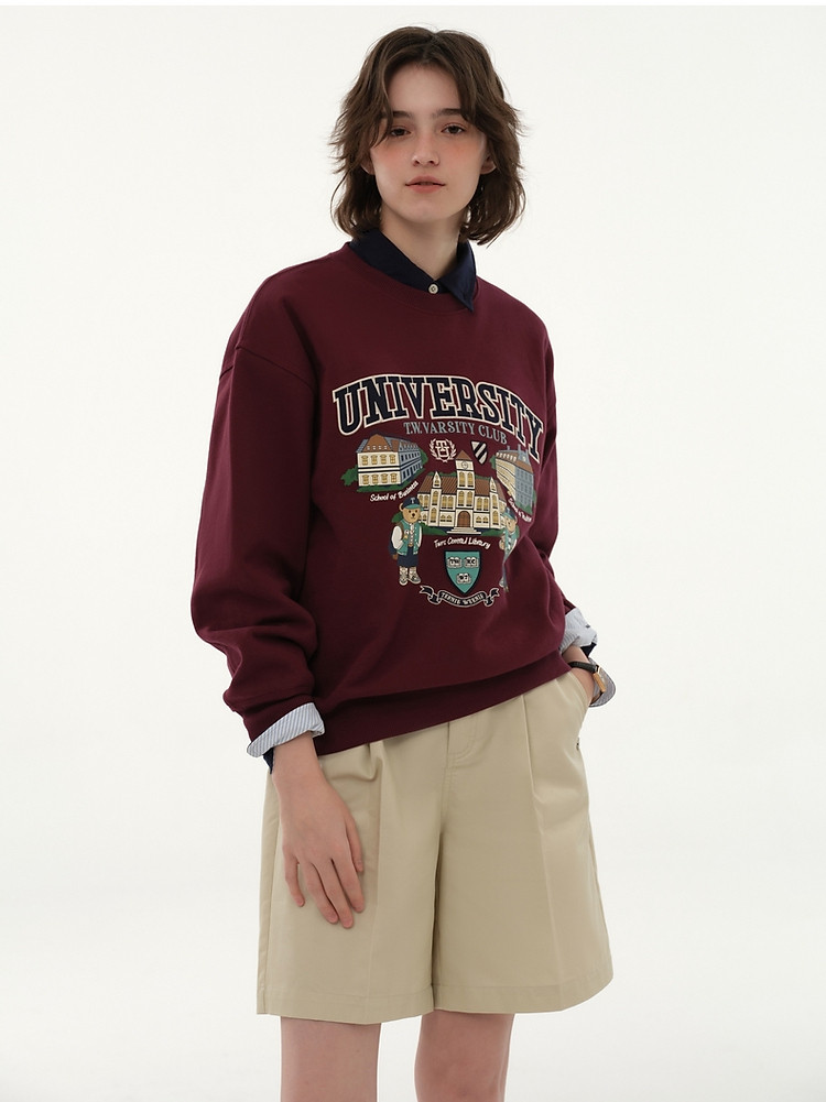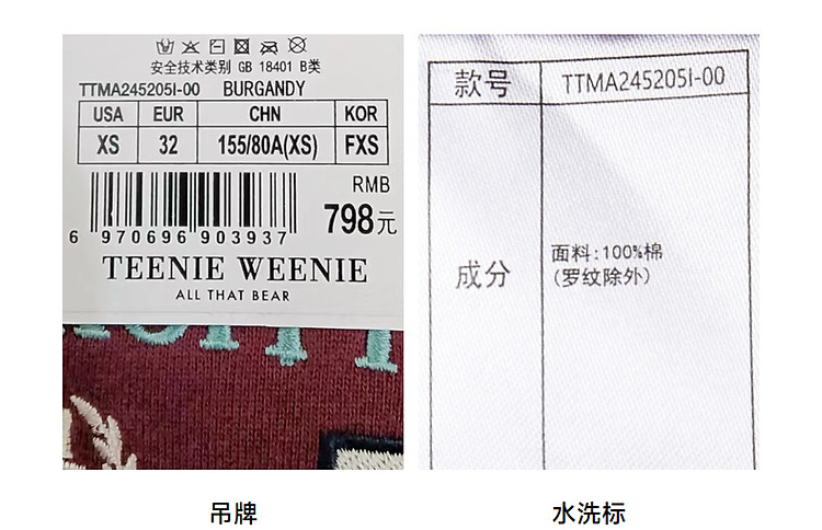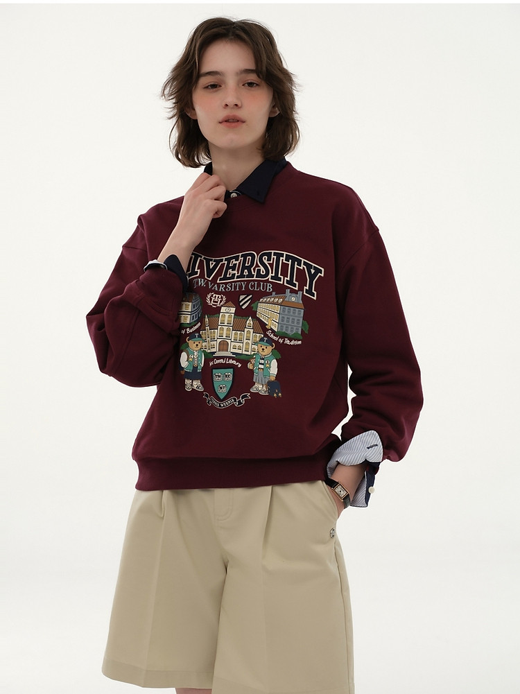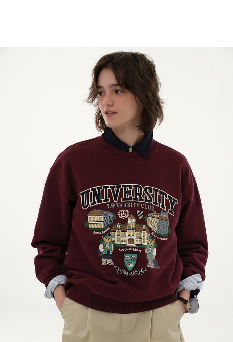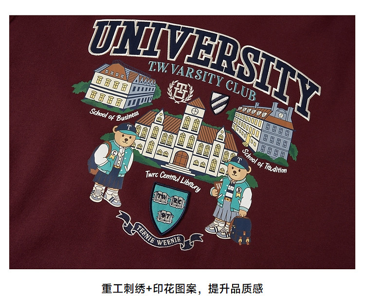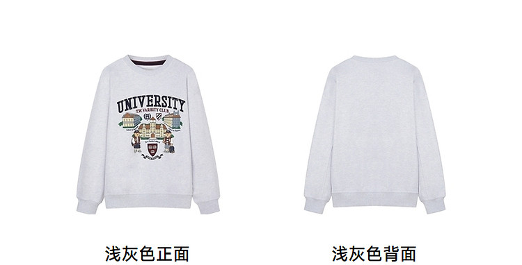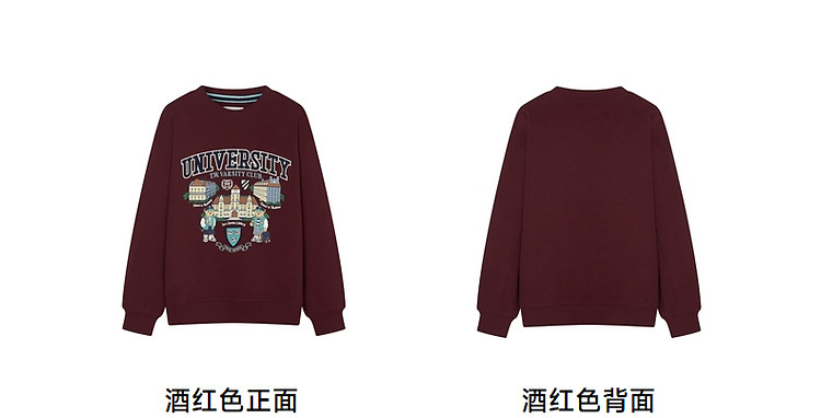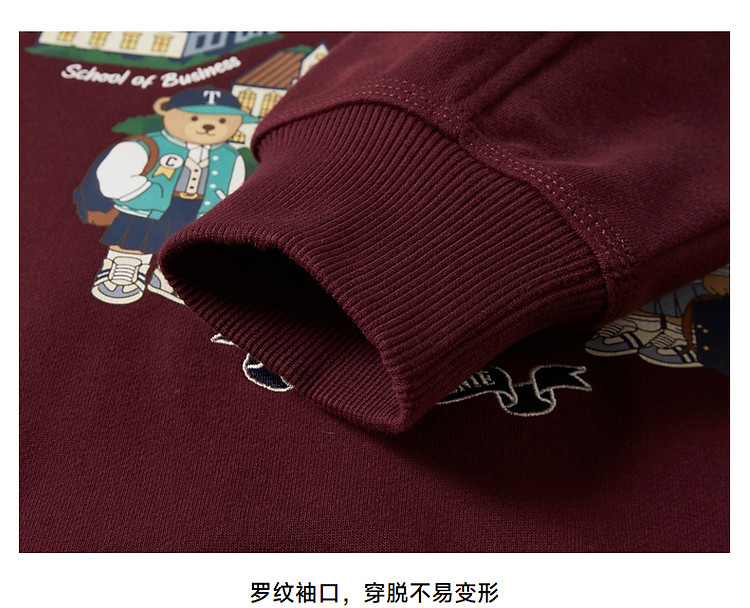 商品名称:小熊磨毛感复古宽松酒红色卫衣美式慵懒风灰色 795649