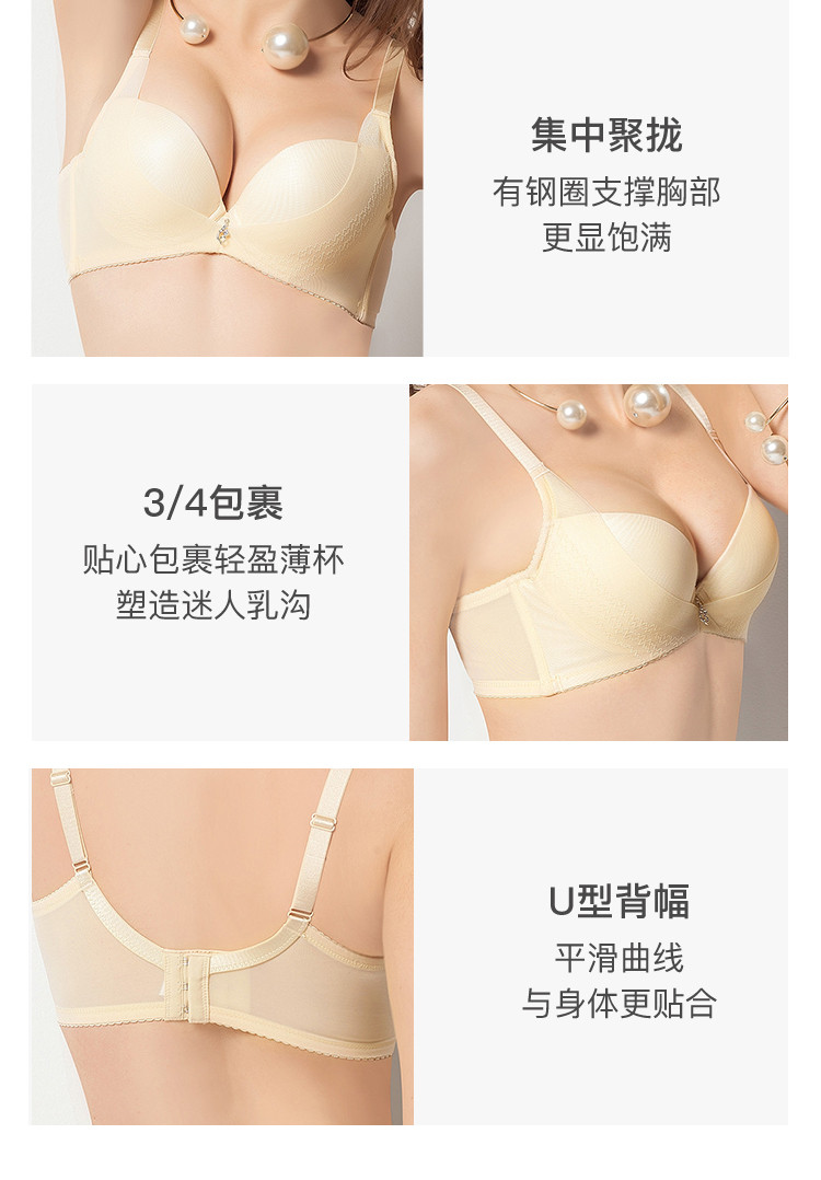 商品名称:【捡漏款】性感聚拢无痕上薄下厚收副乳调整型光面文胸罩美背内衣 985867