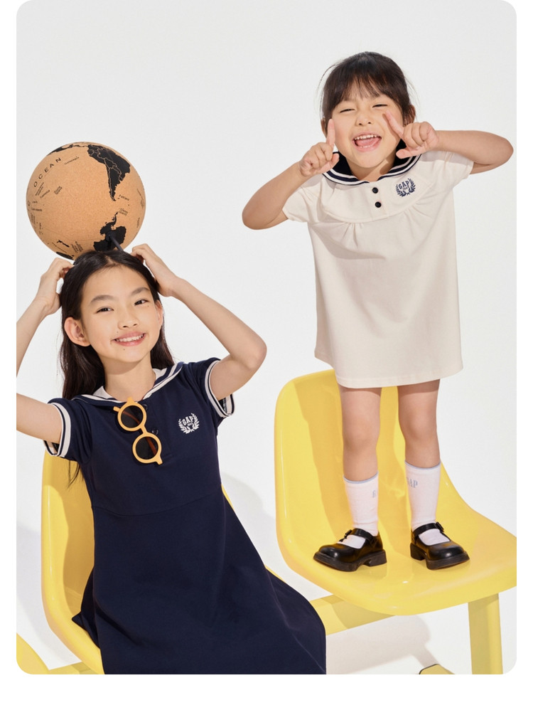 商品名称:Gap女幼童2024春秋柔软透气水手领灯笼袖连衣裙儿童装890469 698522
