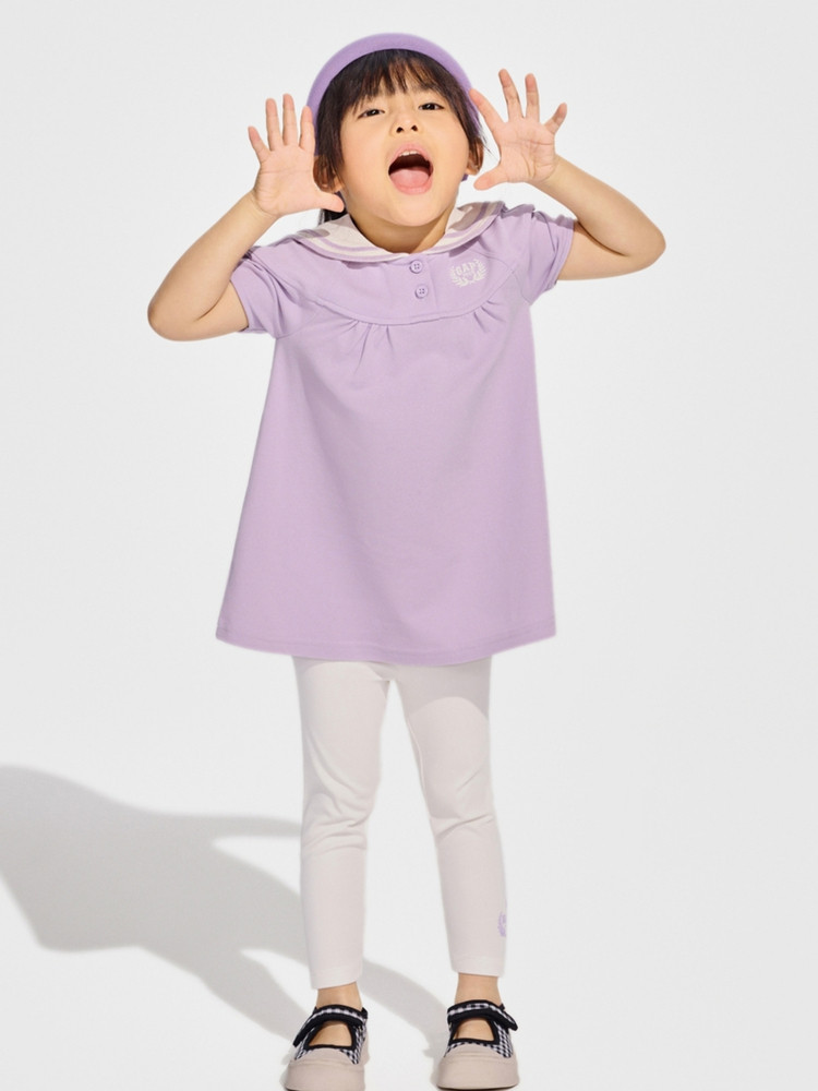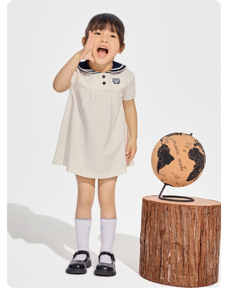 Gap女幼童2024春秋柔软透气水手领灯笼袖连衣裙儿童装890469 698522