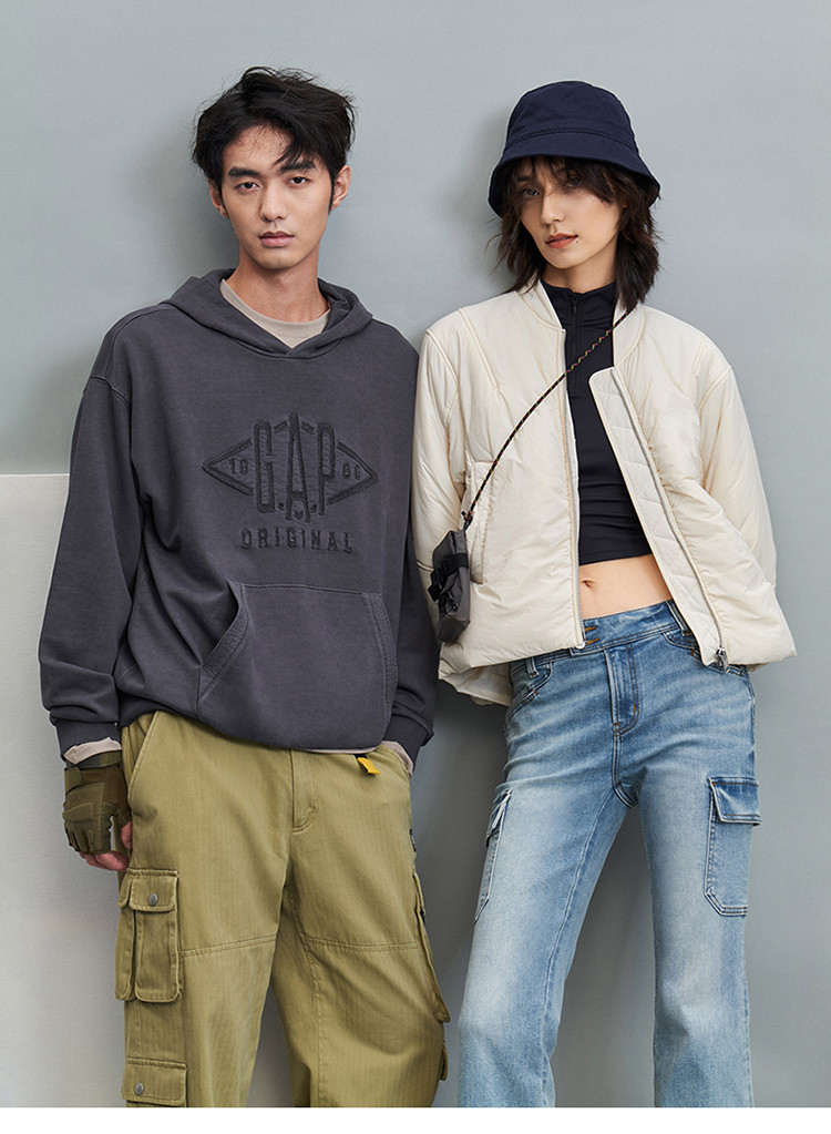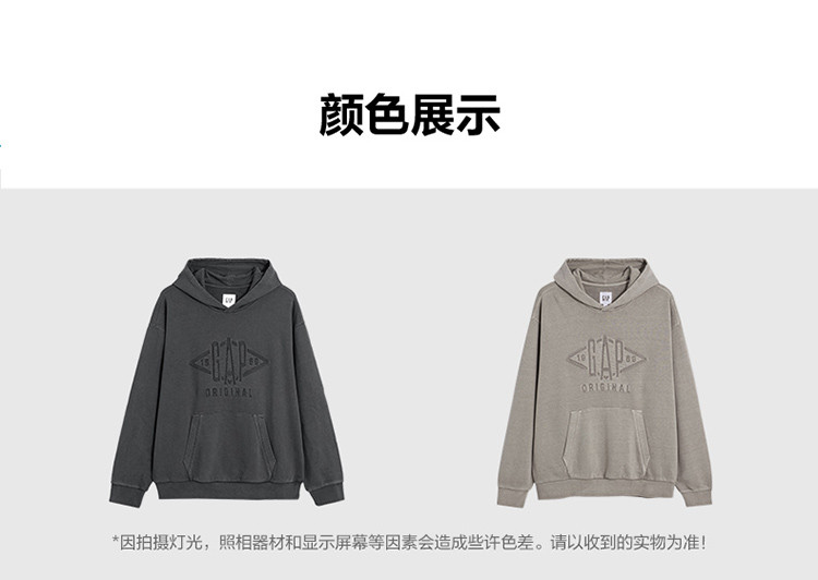 商品名称:Gap男女装春夏LOGO纯棉舒适卫衣简约挺阔宽松情侣装连帽衫837458 998554