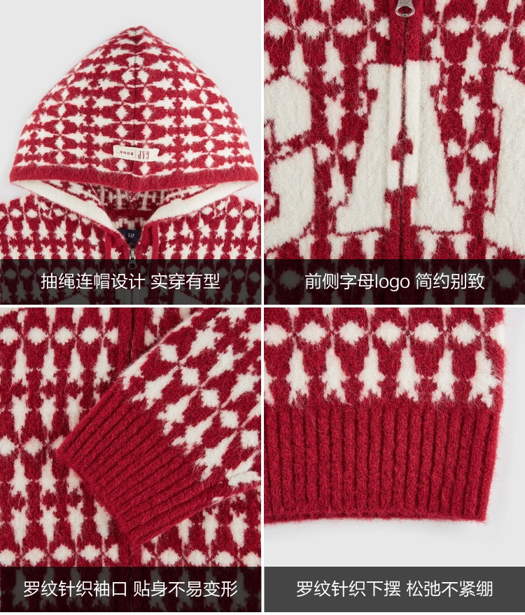 【GAP x 8ON8联名】龙年限定女装秋冬季针织连帽毛衣480038 251930