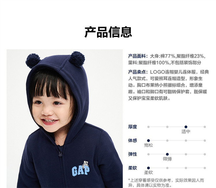 商品名称:Gap婴儿春秋季LOGO熊耳一体式连体衣儿童装外出运动爬服837102 087130