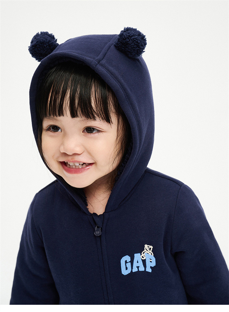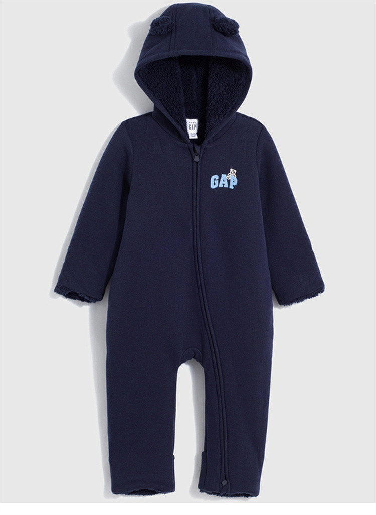 Gap婴儿春秋季LOGO熊耳一体式连体衣儿童装外出运动爬服837102 087130