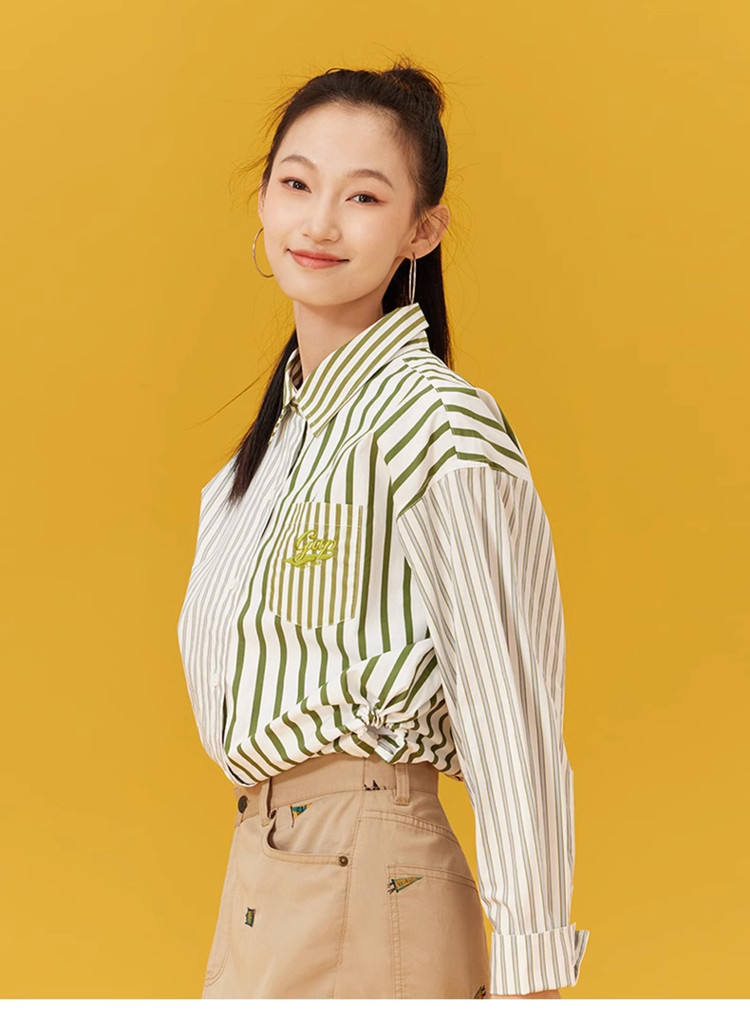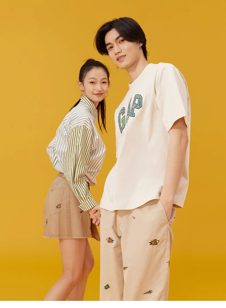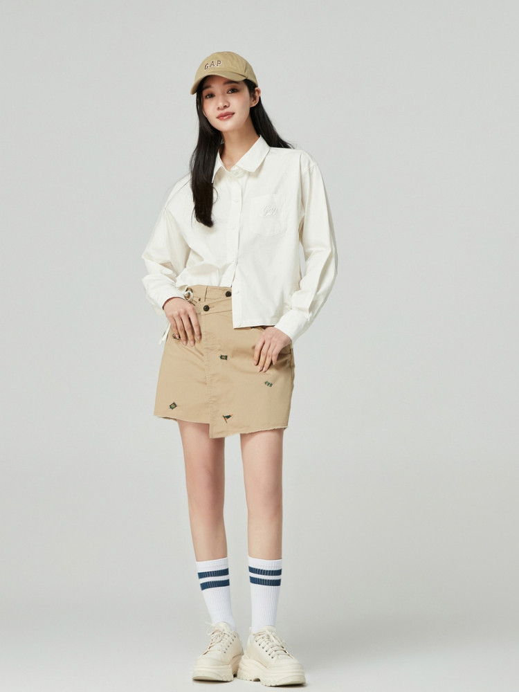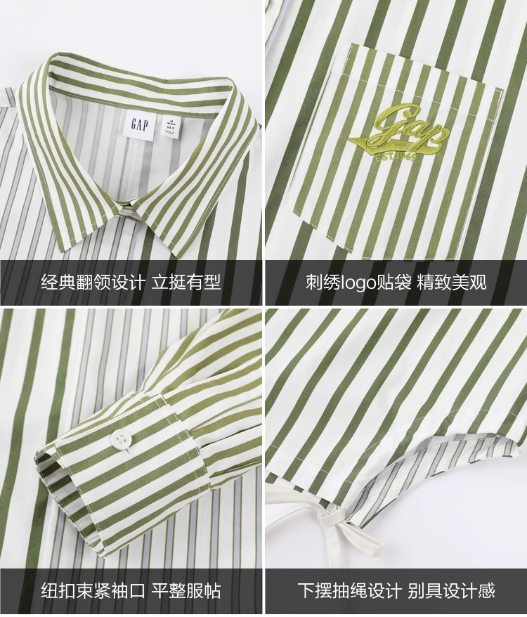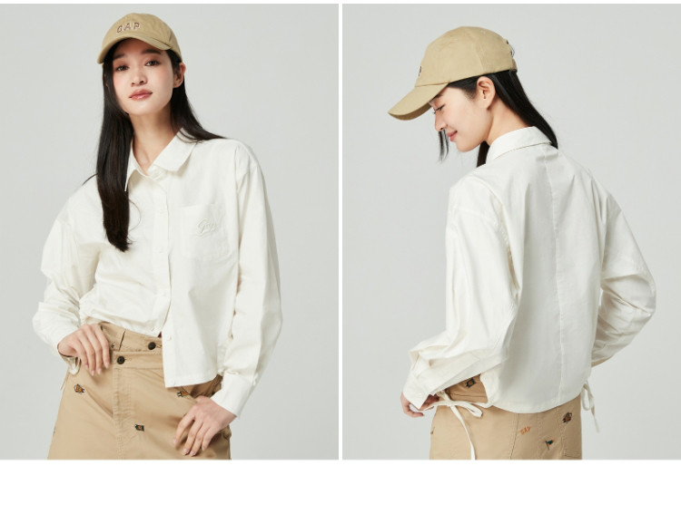 商品名称:Gap女装夏季抽绳开叉拼接长袖衬衫纯棉上衣873202 383002