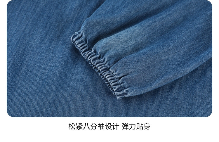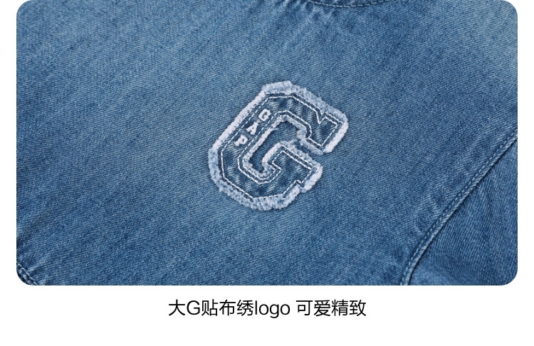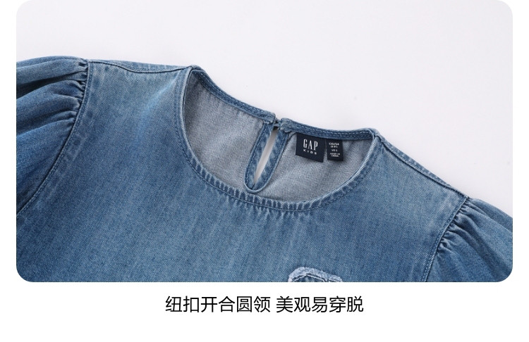 商品名称:Gap女童2024春秋季贴布绣logo八分袖轻薄牛仔连衣裙A字裙890490 895130