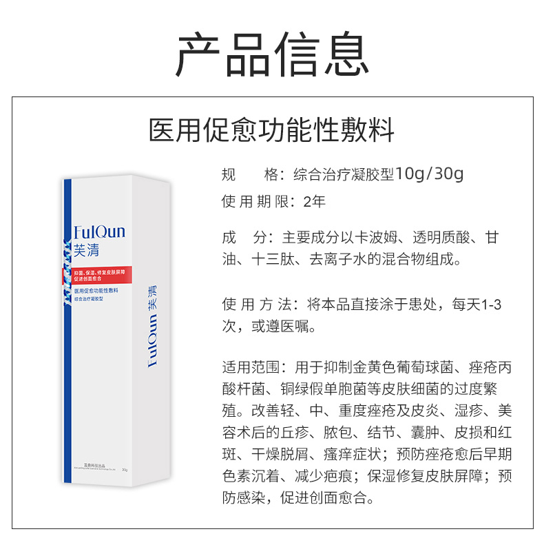 商品名称:芙清 医用凝胶10g/30g 淡化痘印 祛痘