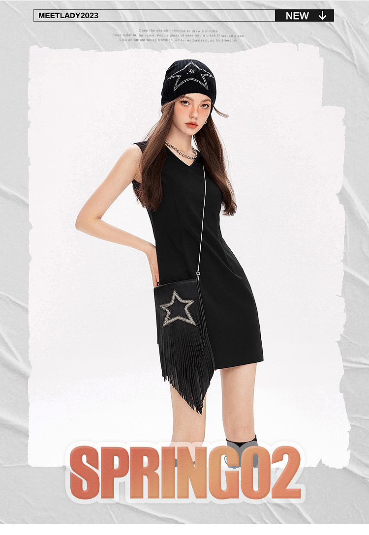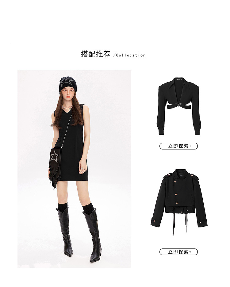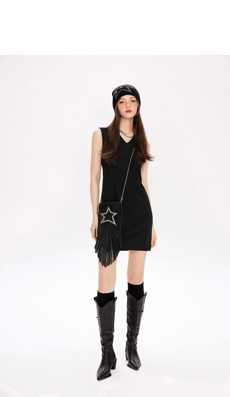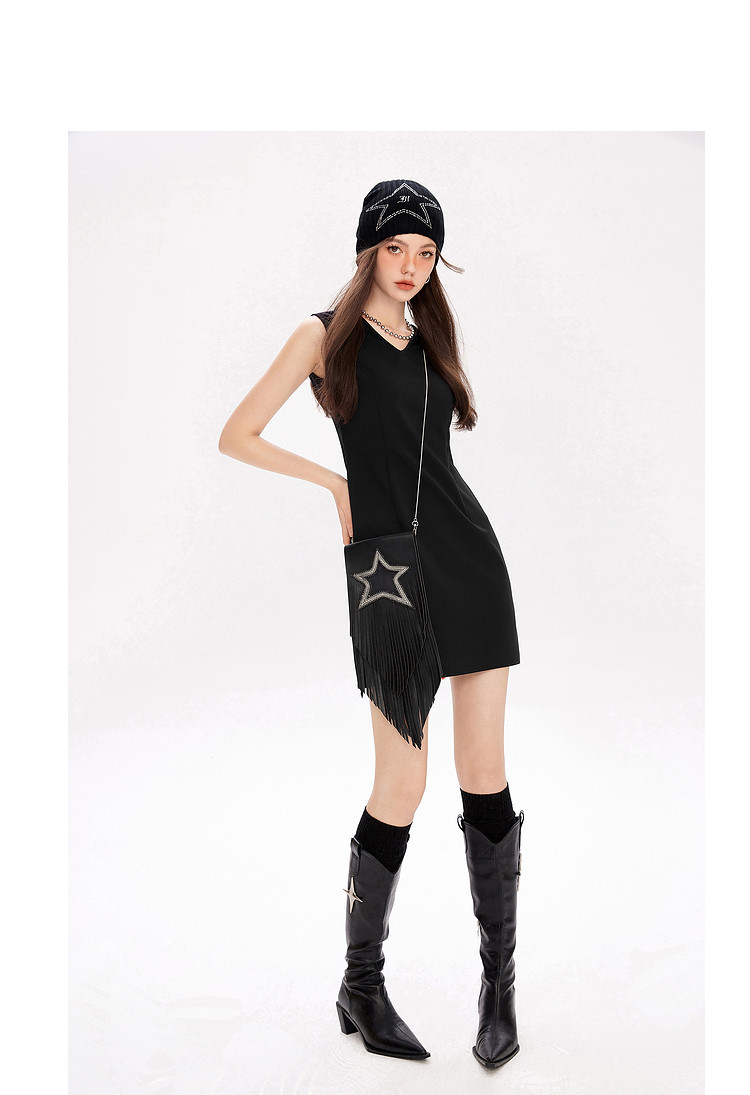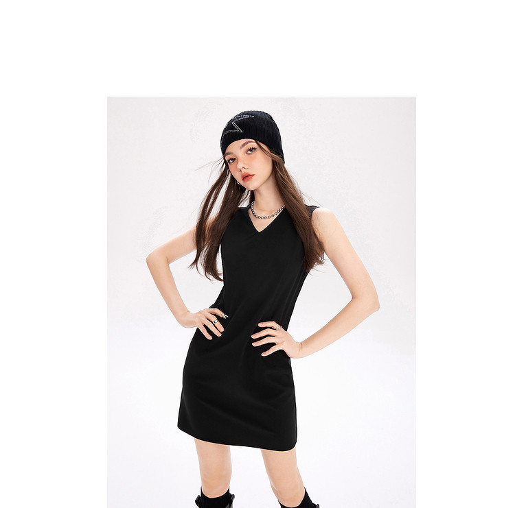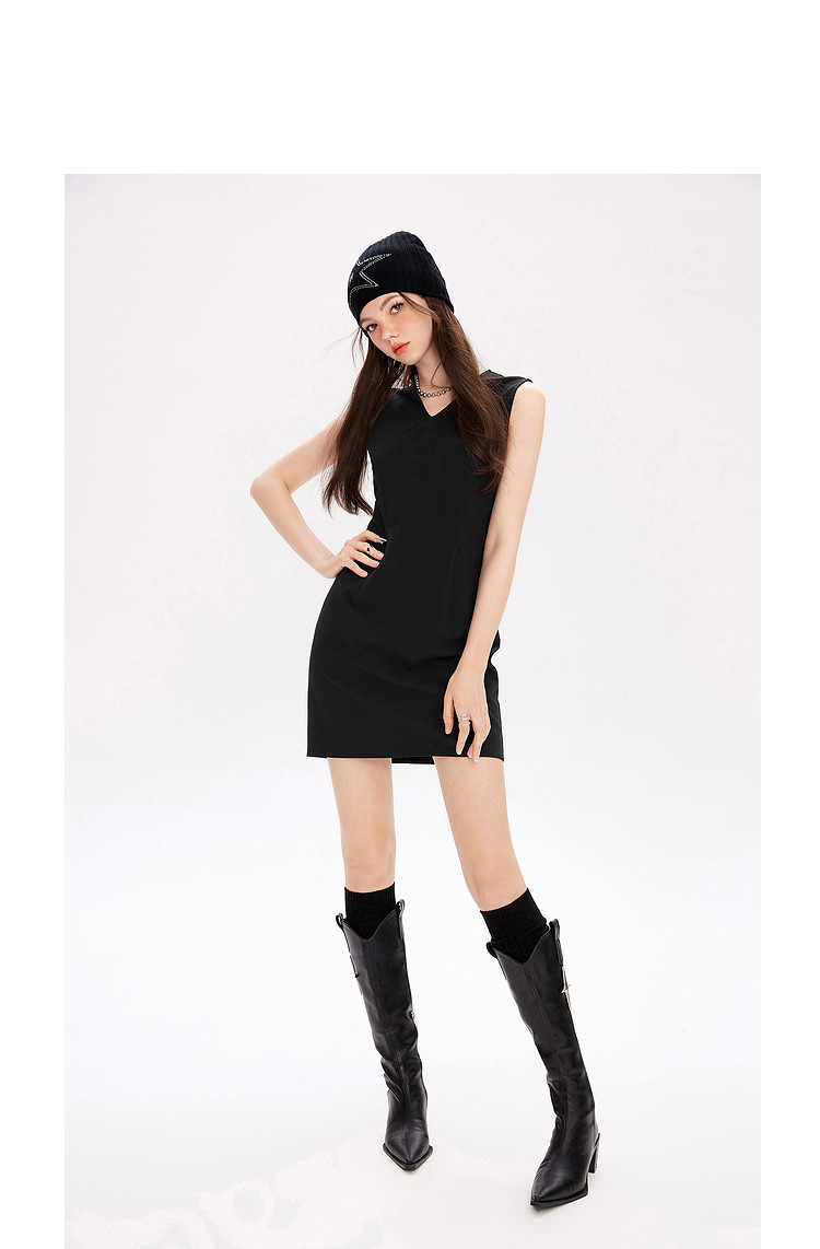 商品名称:24秋季高级v领无袖连衣裙女设计感小众收腰内搭裙 966036