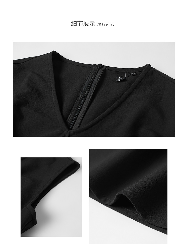 夏装 抽褶短袖连衣裙修身透气显瘦小黑裙 786767