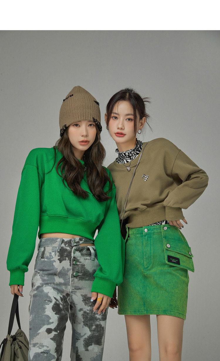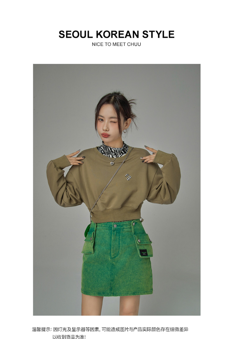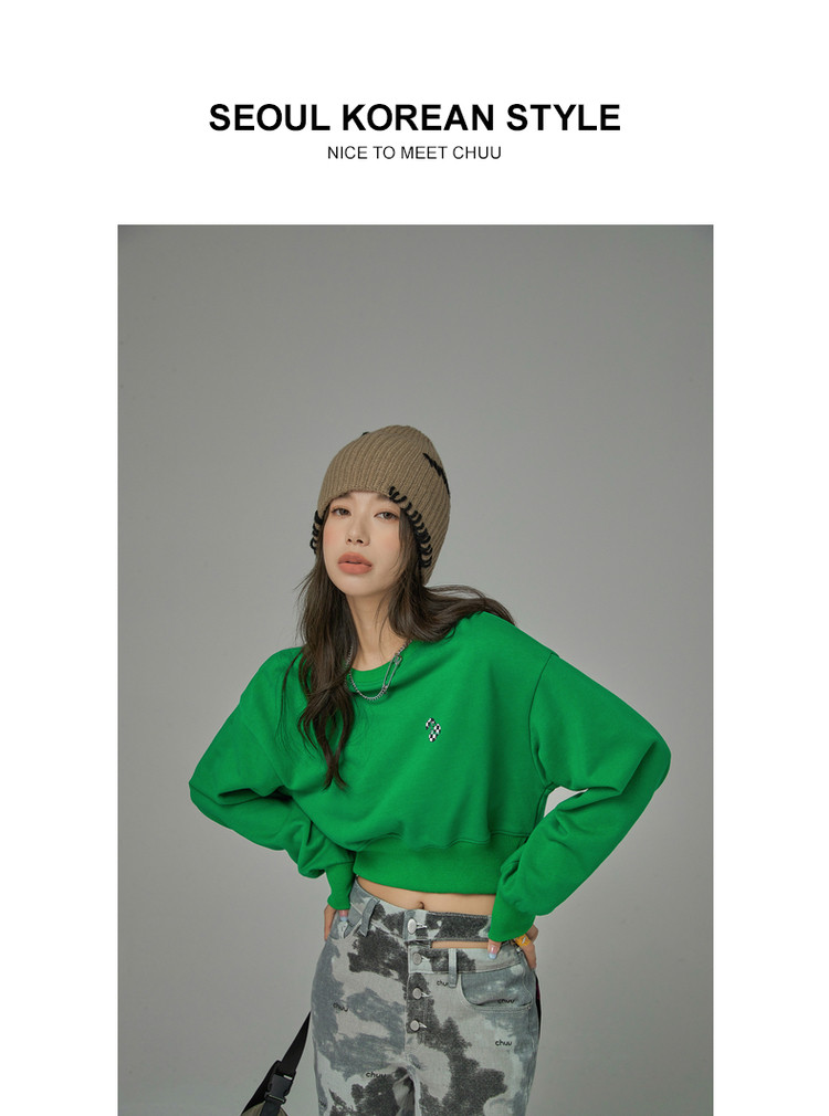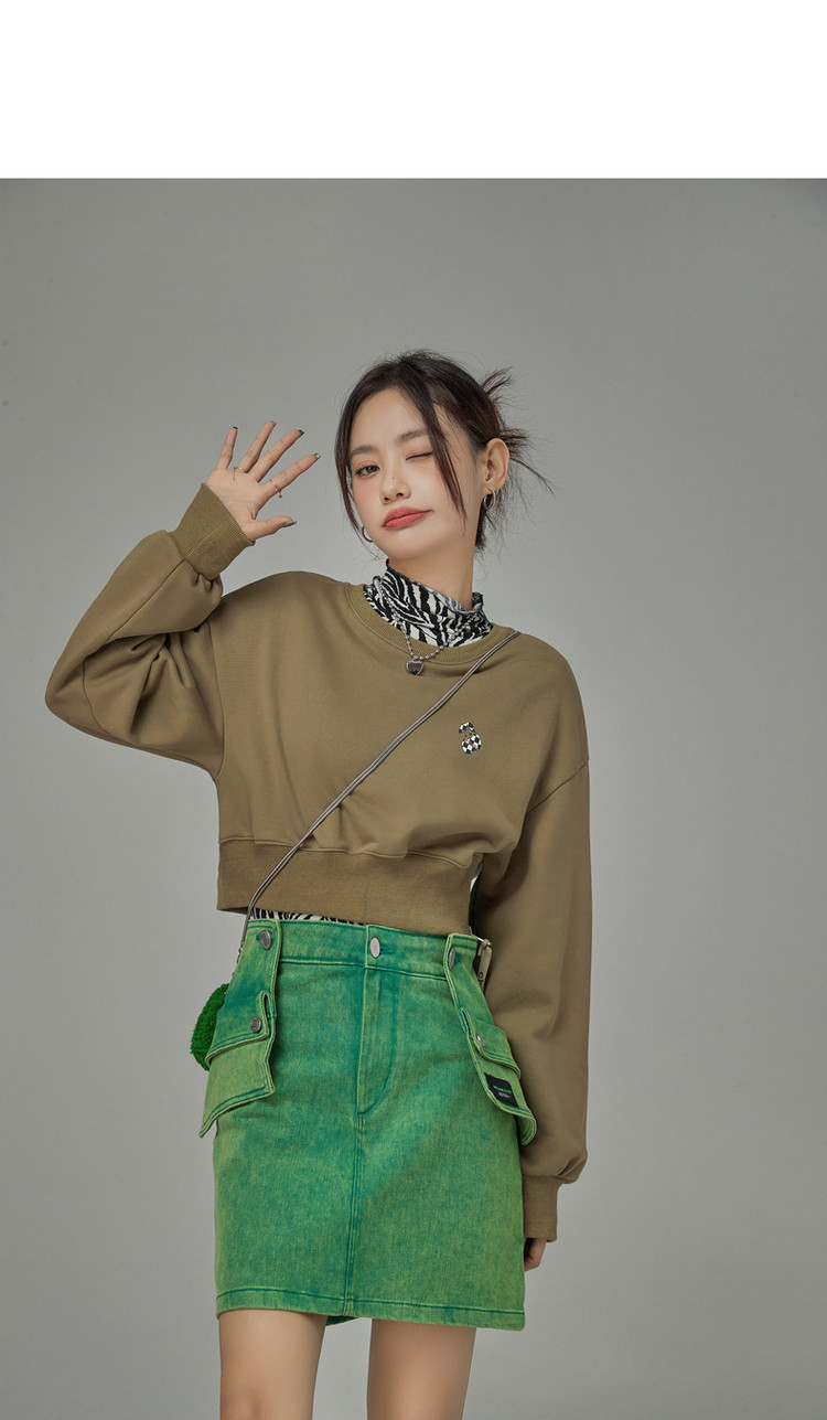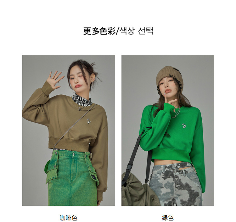 商品名称:圆领长袖短款卫衣女春超火小个子无帽上衣 274451