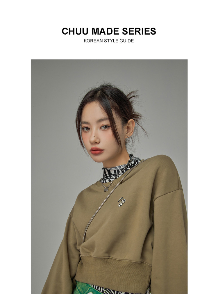 圆领长袖短款卫衣女春超火小个子无帽上衣 274451