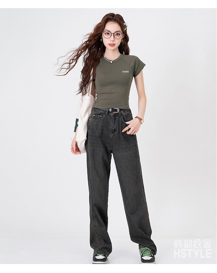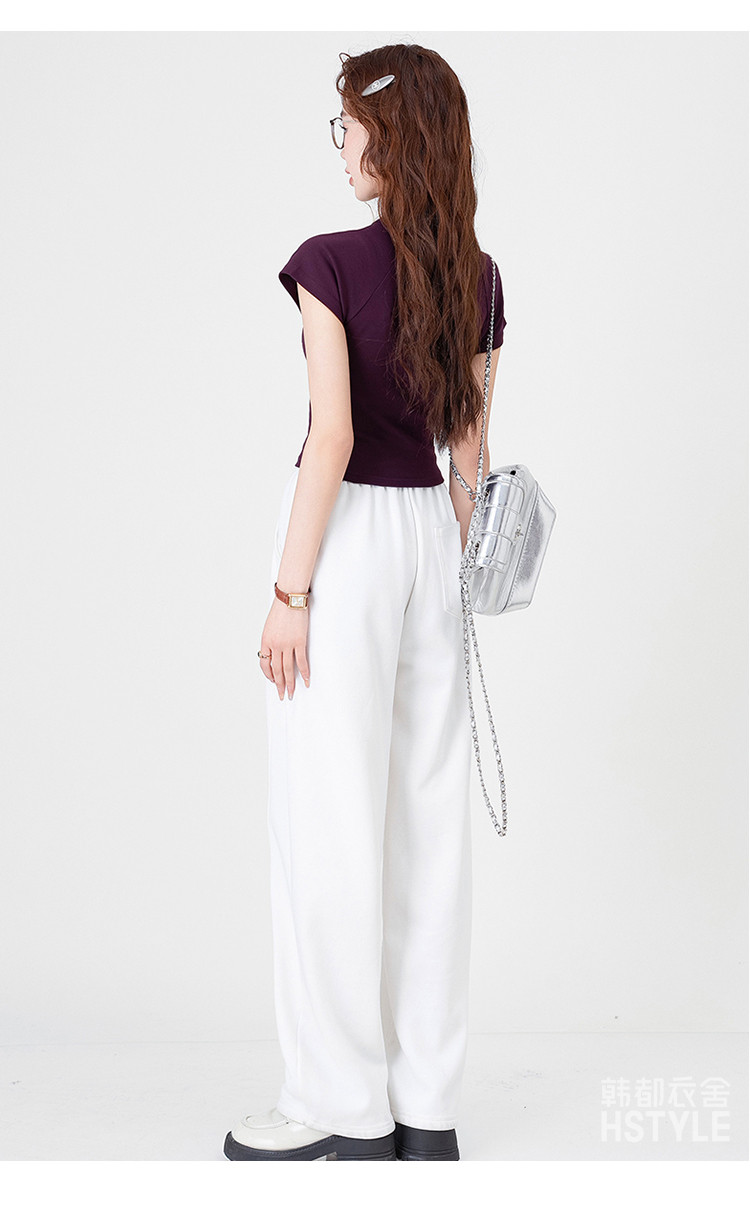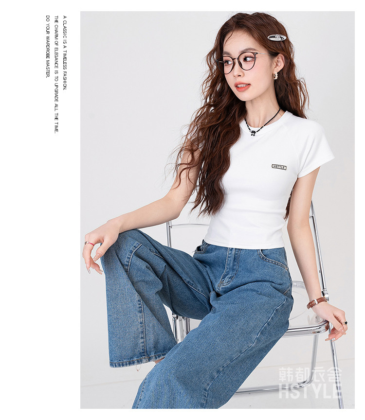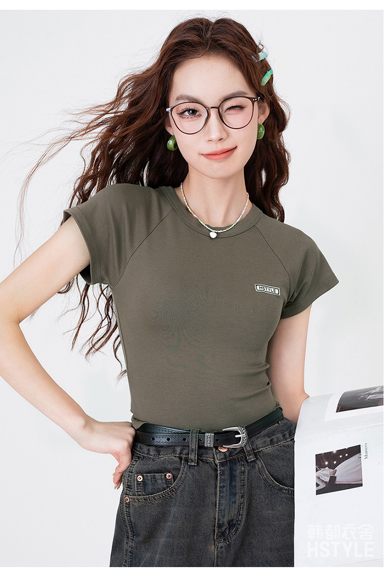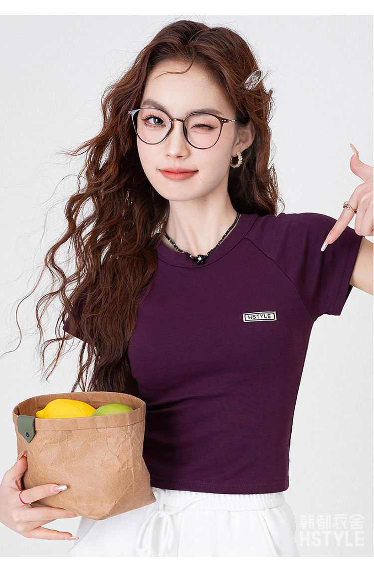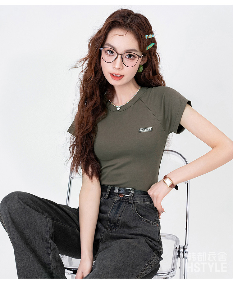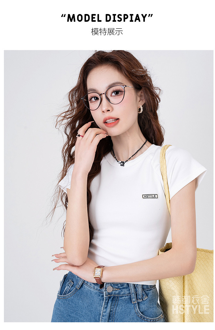 圆领女式t恤夏季短款修身短袖女士纯色上衣女打底 447563