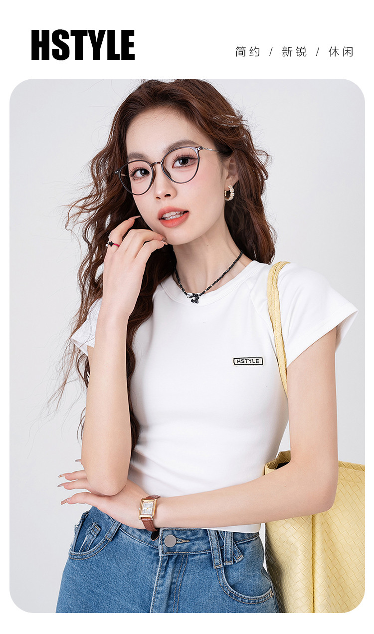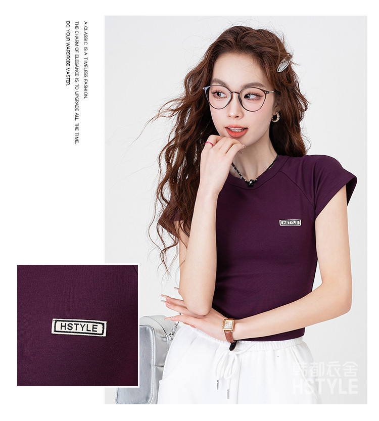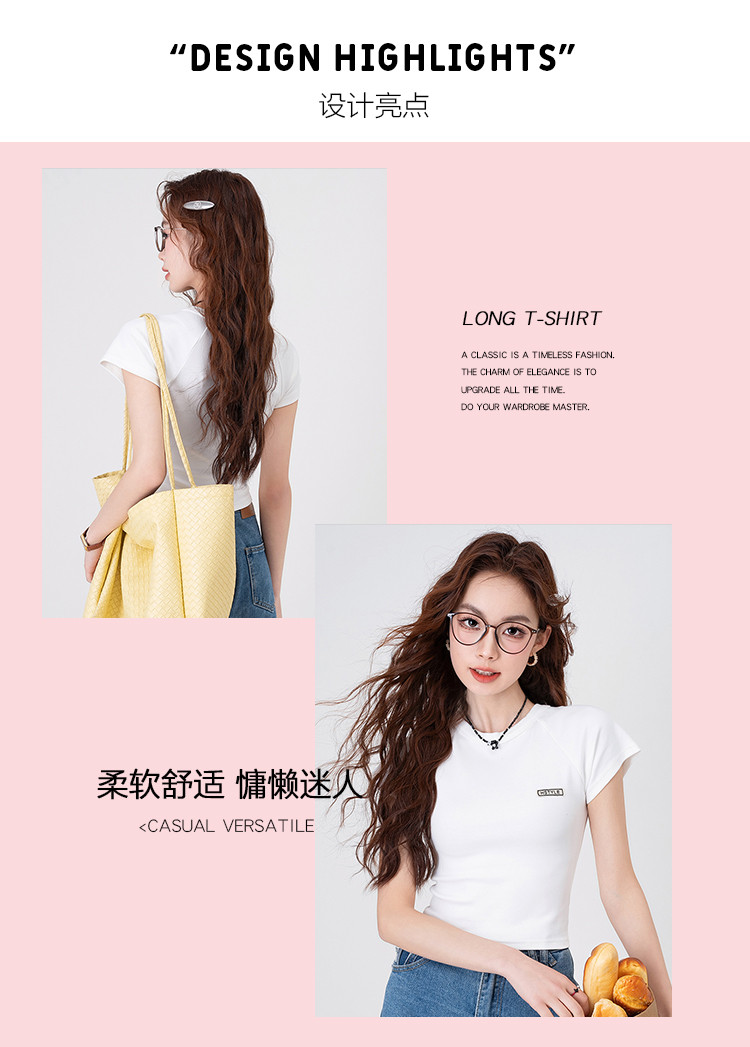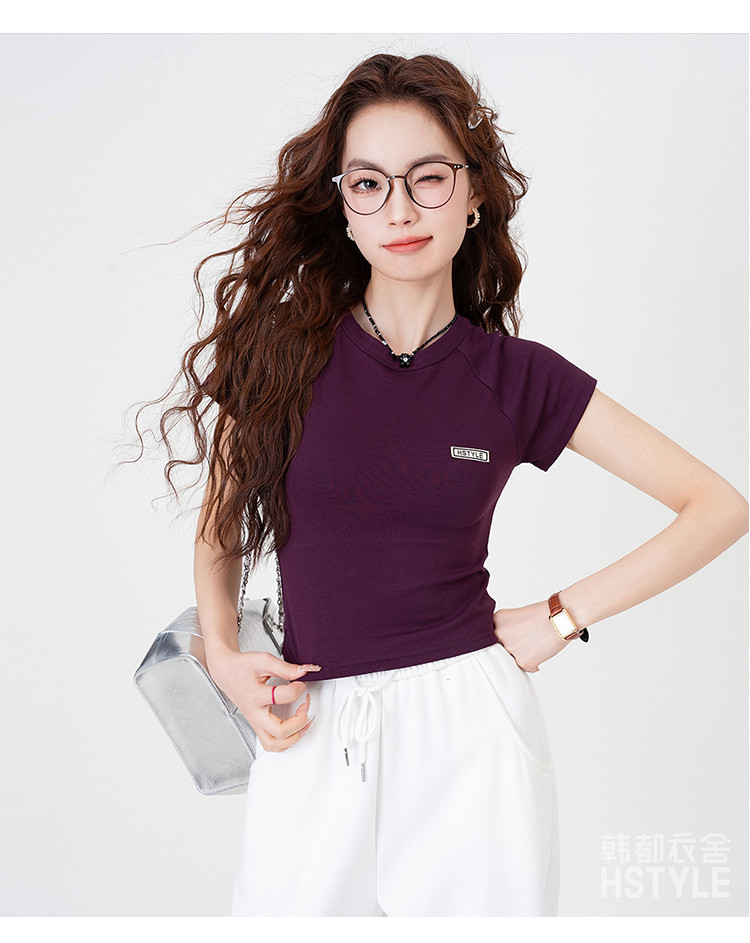商品名称:圆领女式t恤夏季短款修身短袖女士纯色上衣女打底 447563